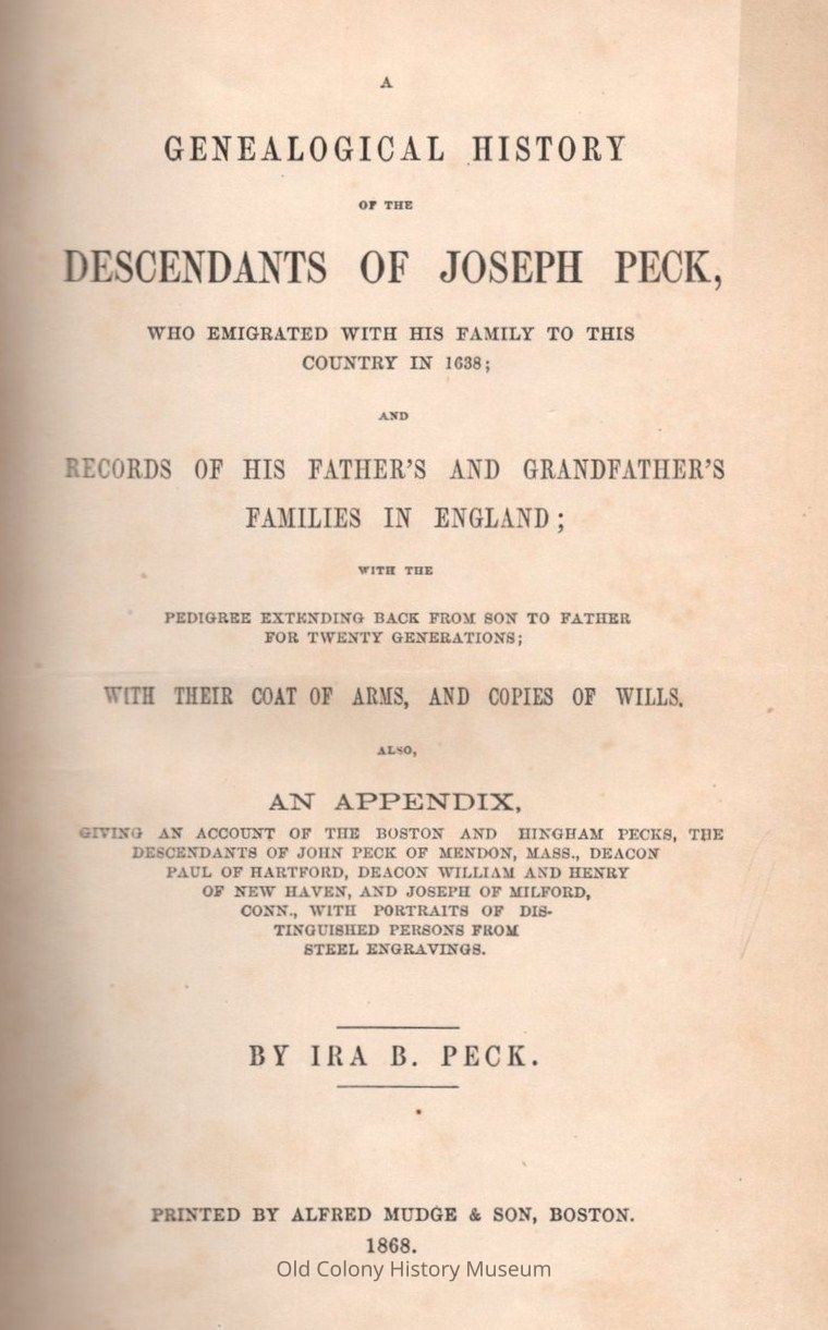 1. Peck family (Joseph Peck, ca. 1587-1663)Book Details