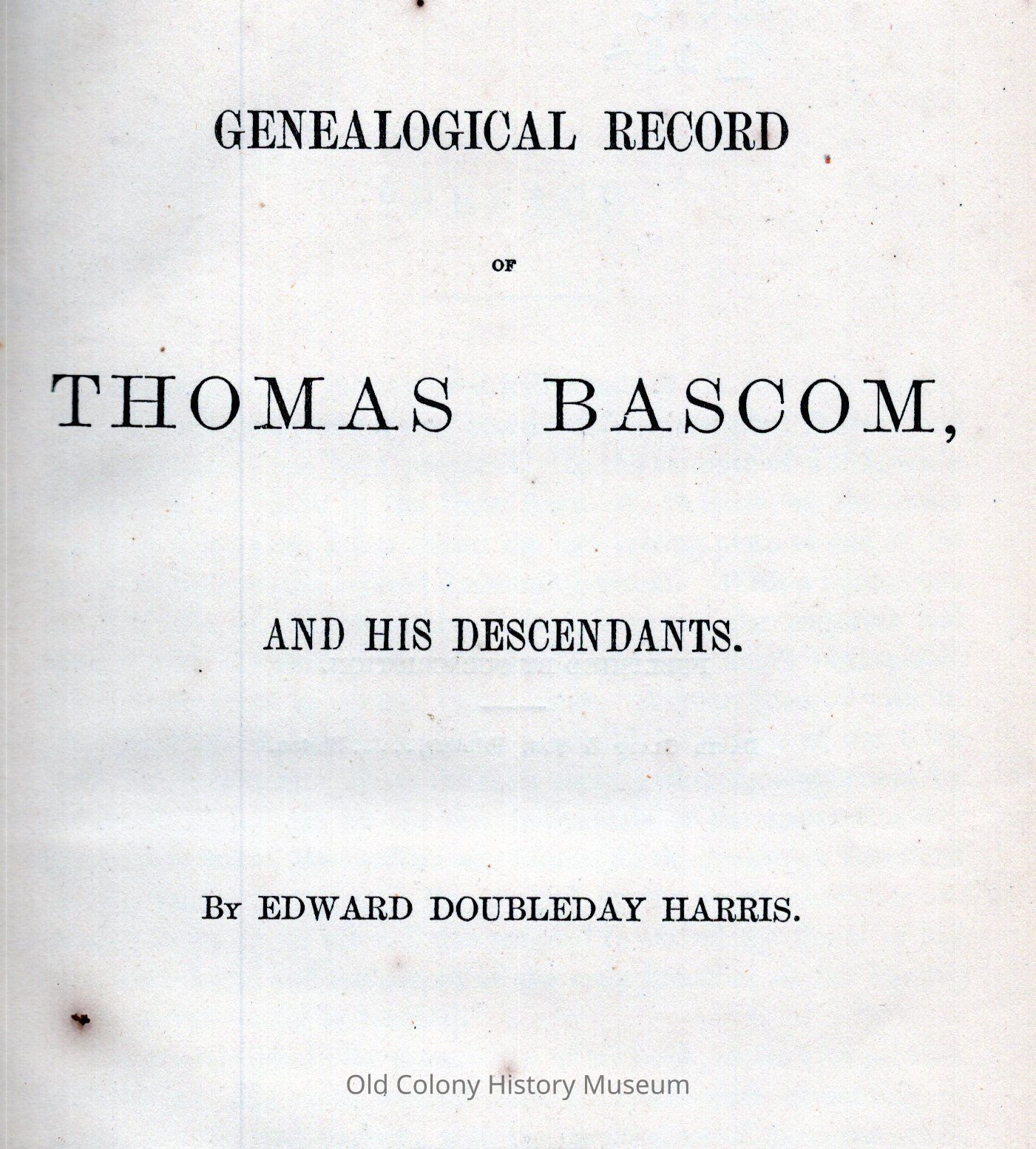 A Genealogical Record of Thomas Bascom and His Descendants.Entry/Object ID