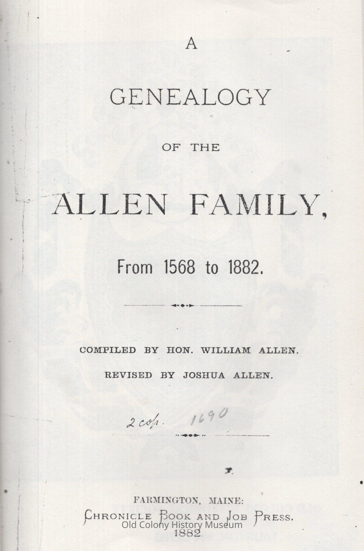 A Genealogy of the Allen Family From 1568 to 1882Entry/Object ID
