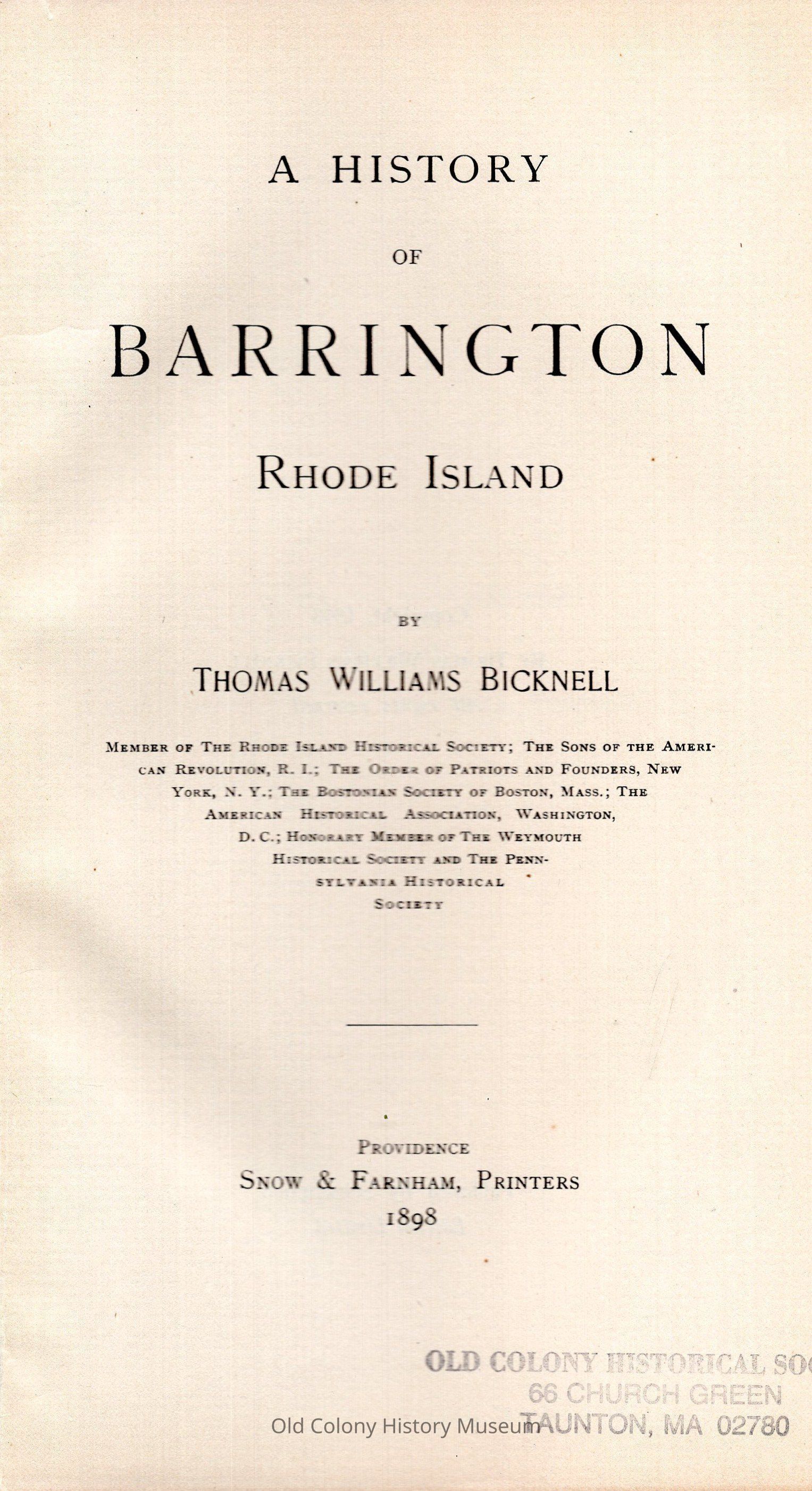 1. Barrington, R.I. - Hist. 2. Barrington, R.I. - Biog.Book Details