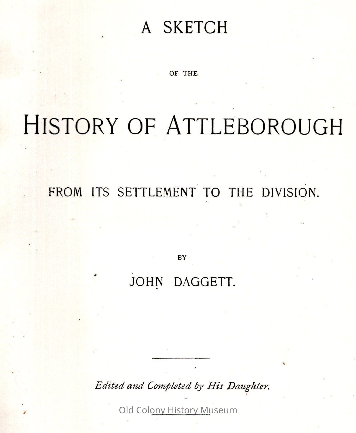 A Sketch of the History of Attleborough, from its Settlement to the Division.Entry/Object ID
