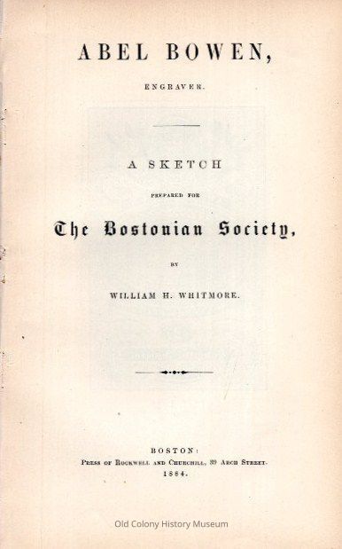 Abel Bowen, Engraver: A Sketched Prepared For The Bostonian SocietyEntry/Object ID