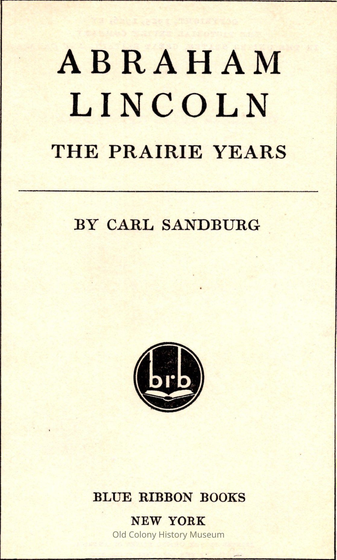 Abraham Lincoln, the Prairie Years: With 105 illustrations from photographs, and many cartoons, sketches, maps, and letters�Entry/Object ID