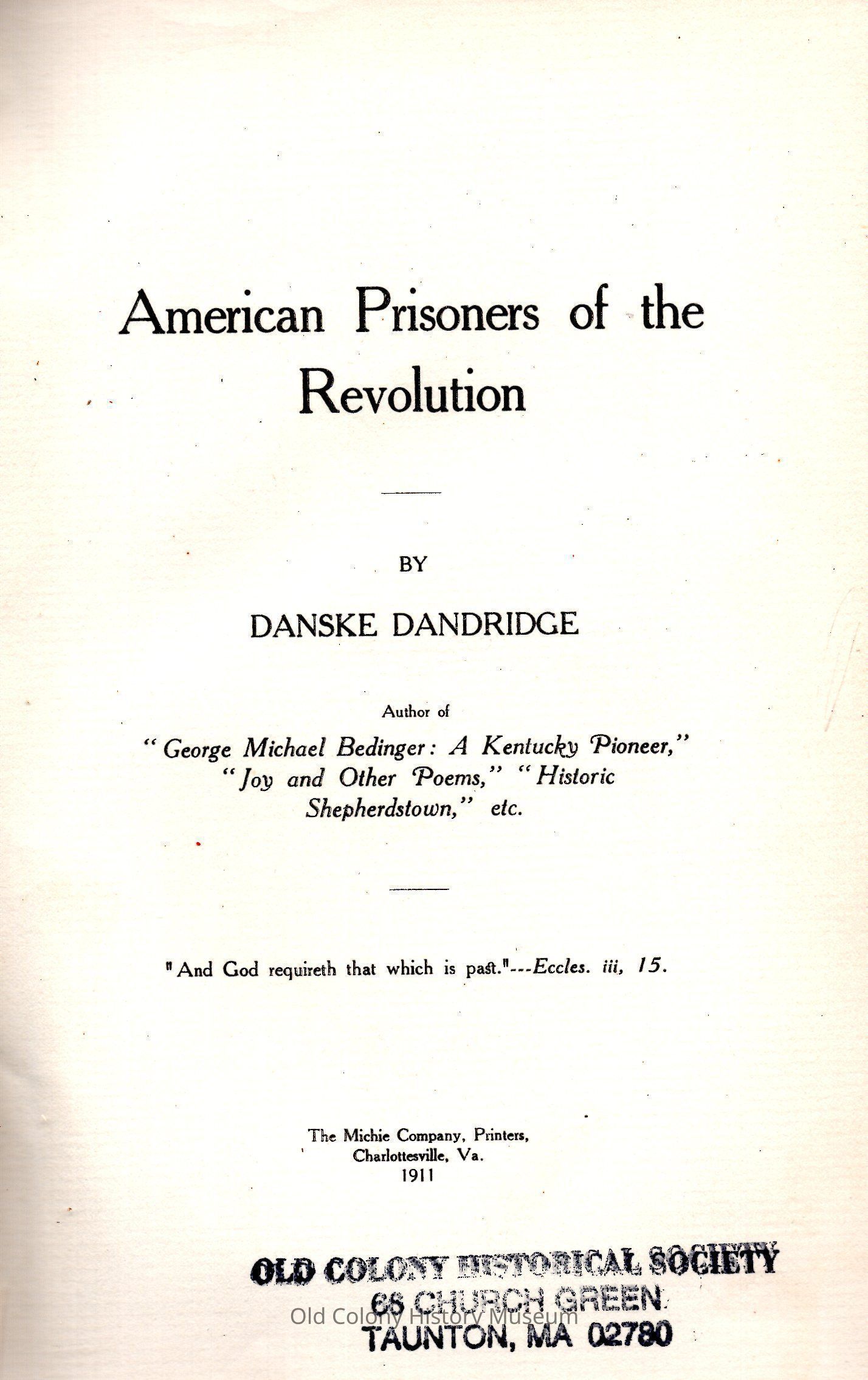 American Prisoners of the RevolutionEntry/Object ID
