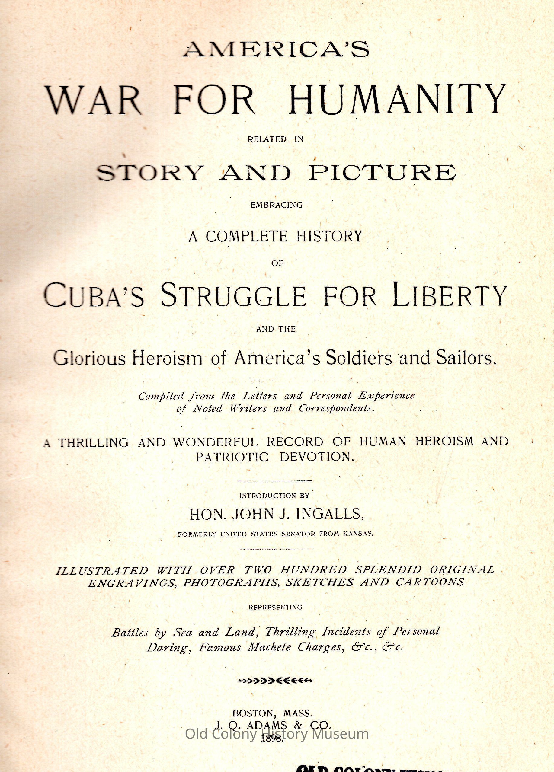 America's War for Humanity Related in Story and Picture, Embracing a Complete History of Cuba's Struggle for Liberty, and the Glorious Heroism of America's Soldiers and Sailors, Compiled from the Letters and Personal Experience of Noted Writers and CorrespondentsEntry/Object ID