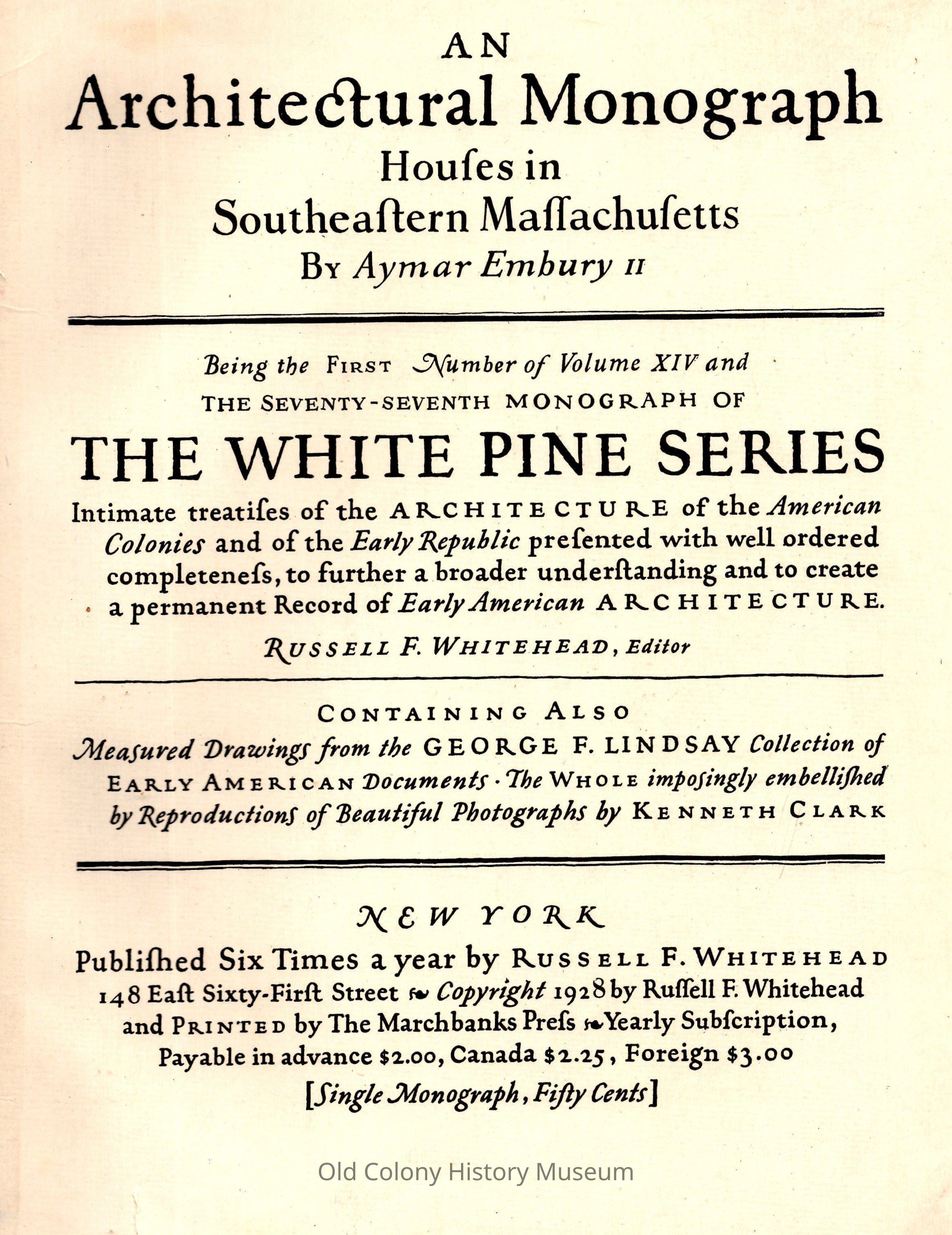 Aymar Embury, Drawings from George F. Lindsay. Photographs by Kenneth Clark.Publisher
