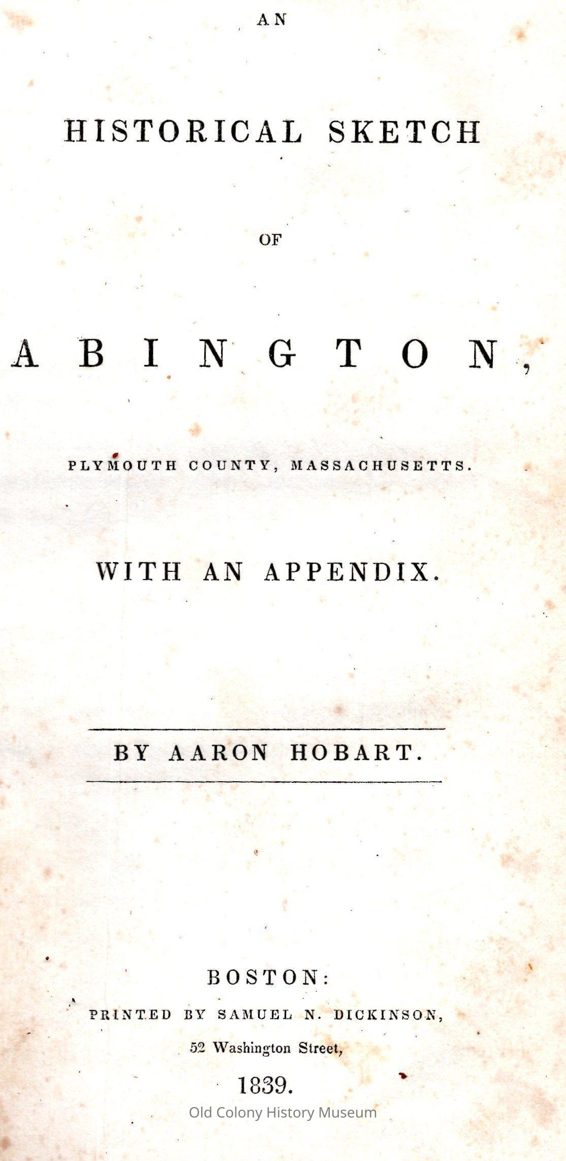 An Historical Sketch of Abington, Plymouth County, Massachusetts.Entry/Object ID