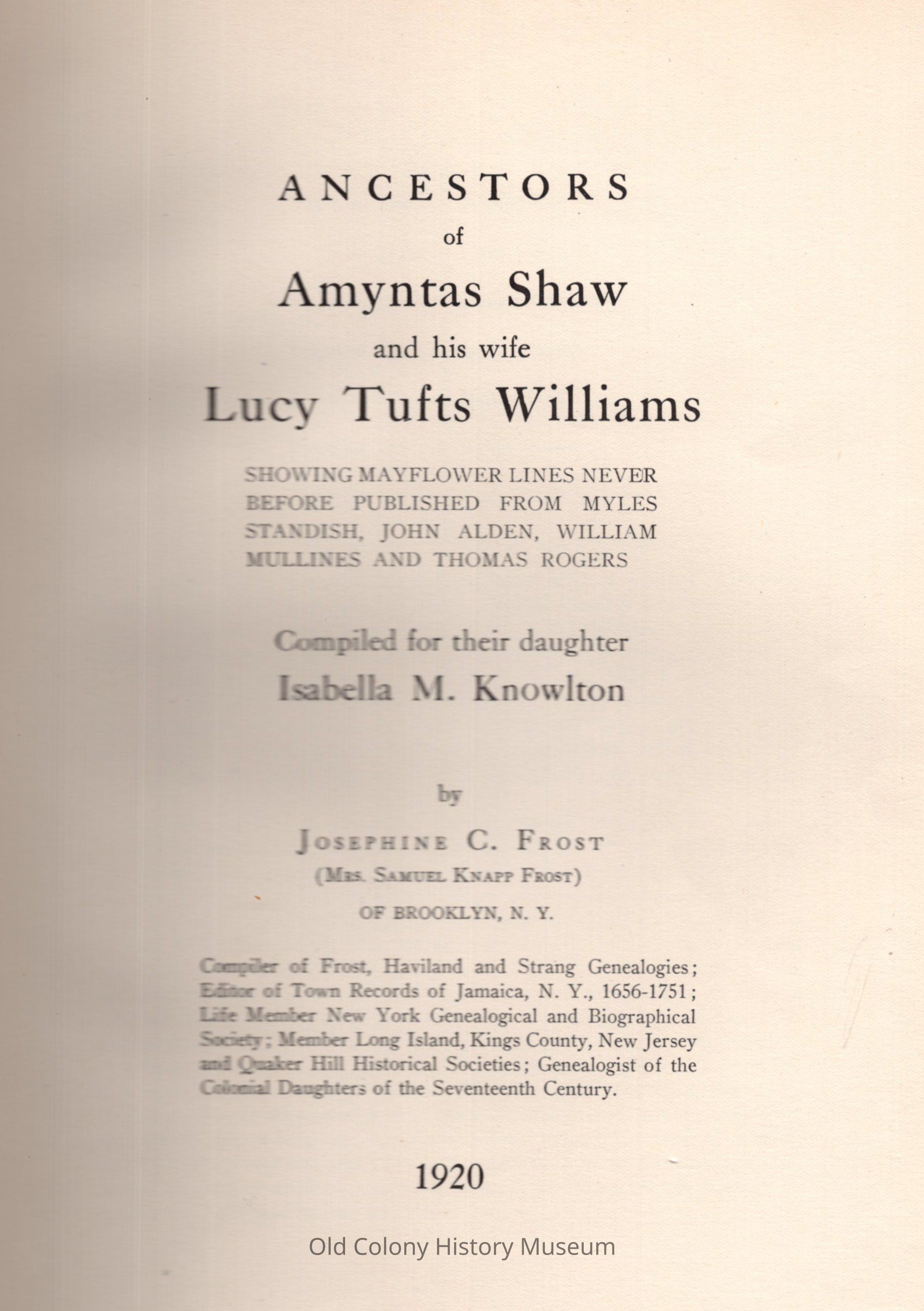 Ancestors of Amyntas Shaw and His Wife Lucy Tufts WilliamsEntry/Object ID
