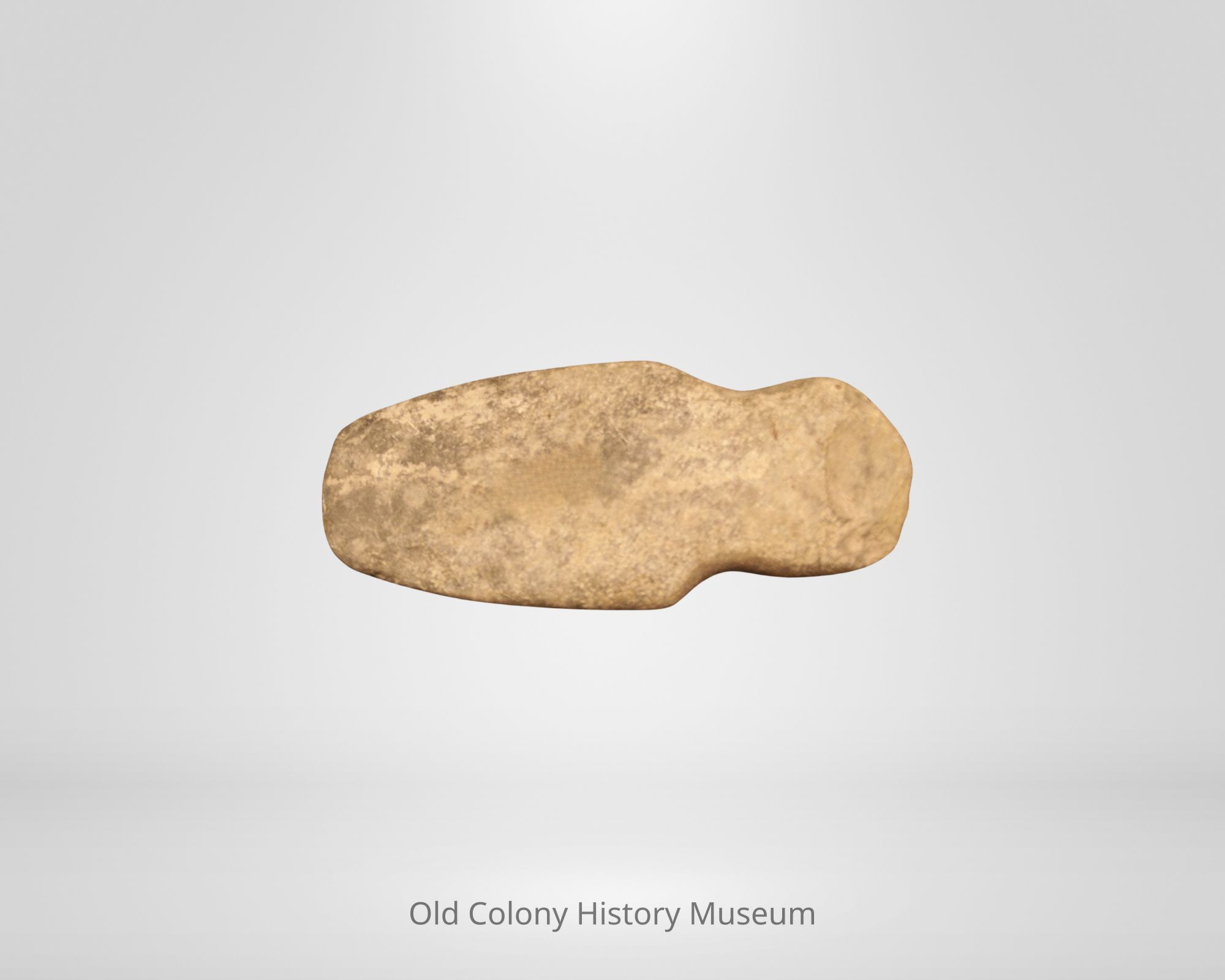 Full grooved axe is worn at bit and butt; some iron stains; the butt has several gouges; one side is convex, the other is flatMade/Created