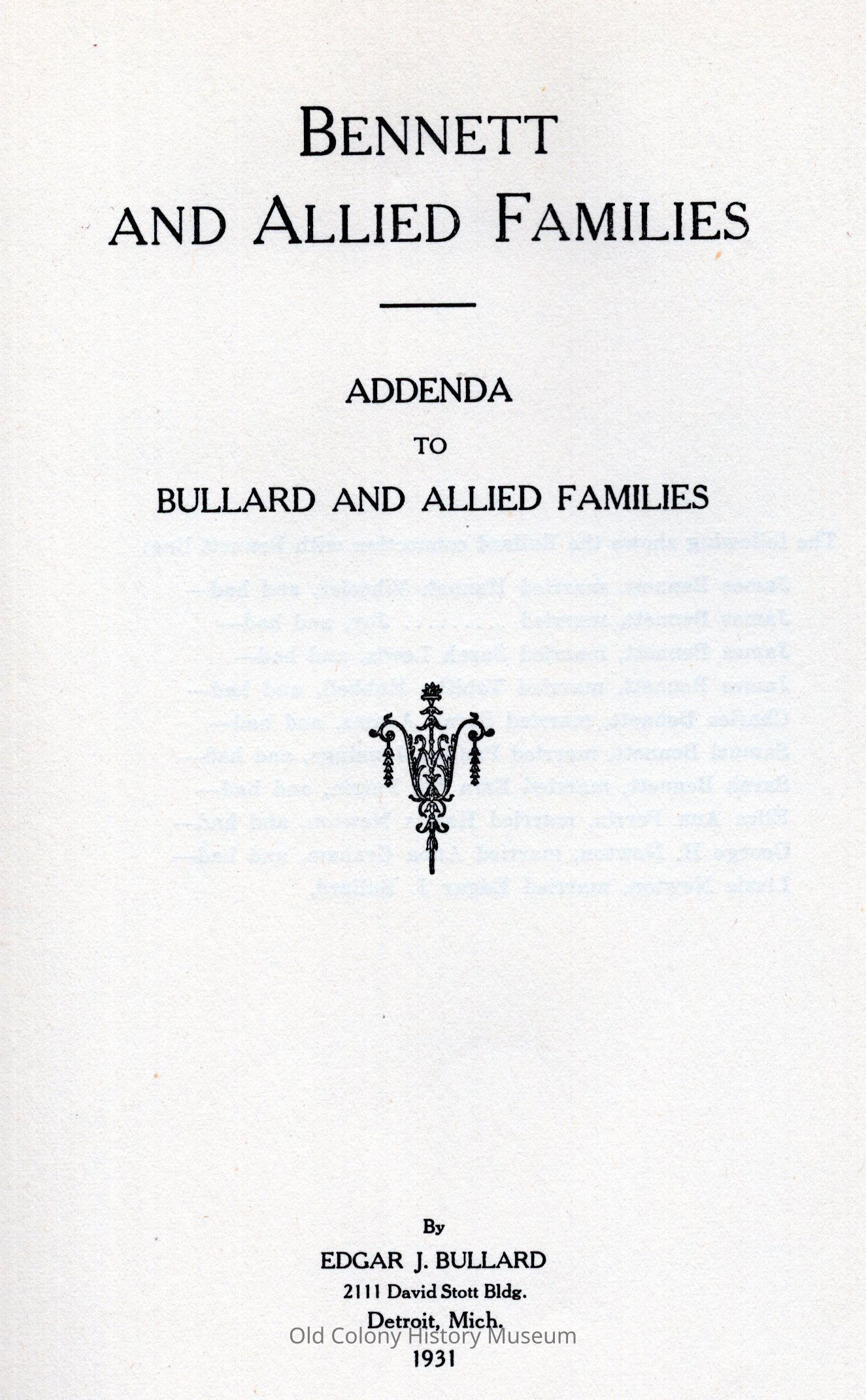1. Bennett family. 2. Bullard family. 3. Burritt. 4. Charles Bennet. 5. abt.Book Details