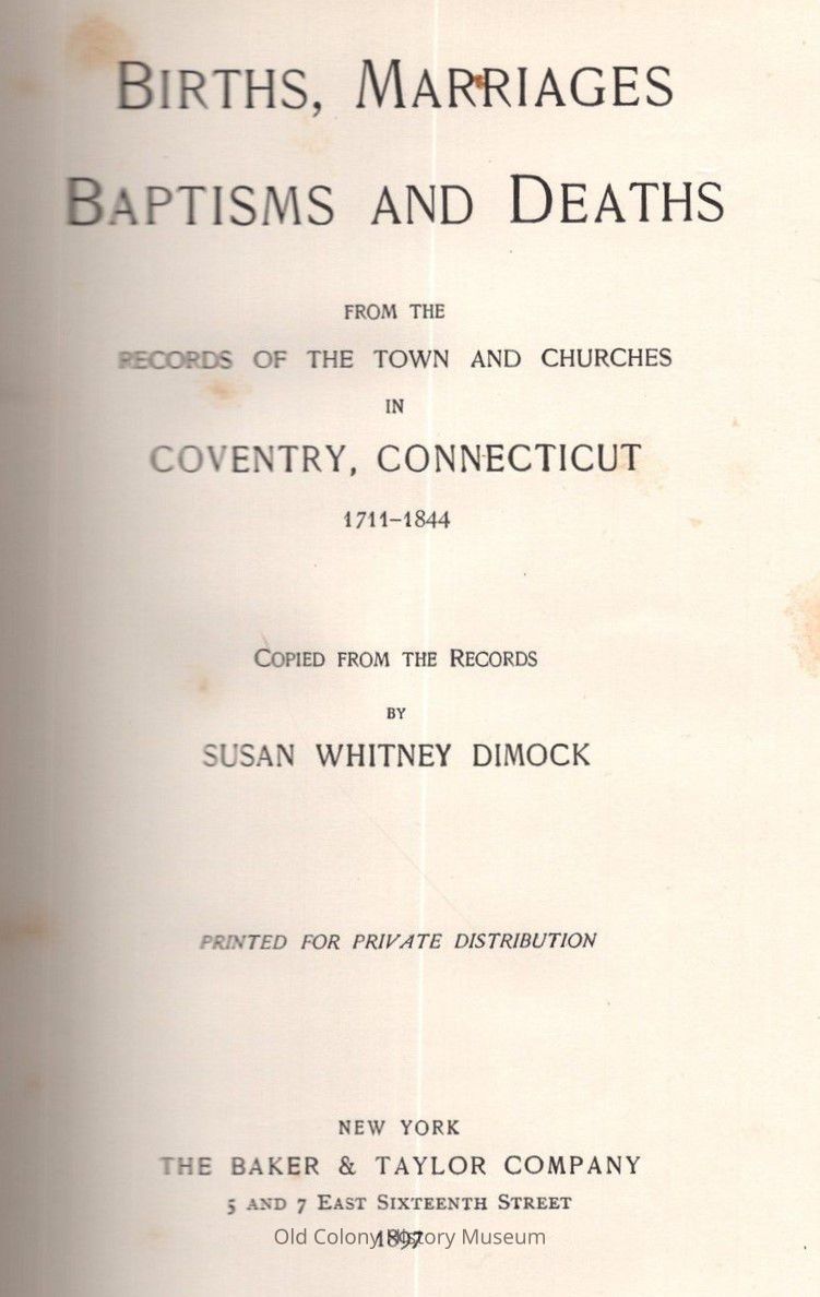 Births, Marriages, Baptisms and Deaths: From the Records of the Town and Churches of Coventry, Connecticut, 1711-1844Entry/Object ID