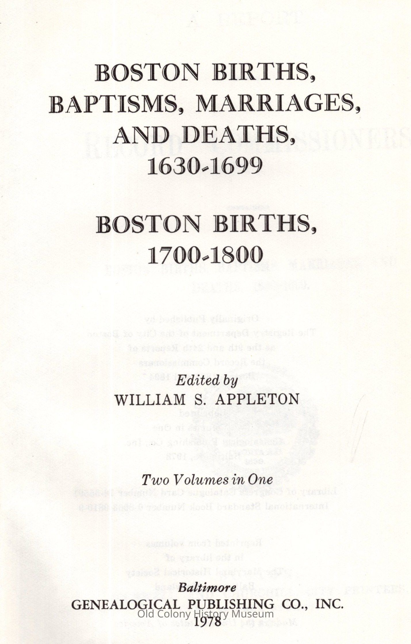 Boston Births, Baptisms, Marriages, and Deaths, 1630-1699; Boston Births, 1700-1800Entry/Object ID