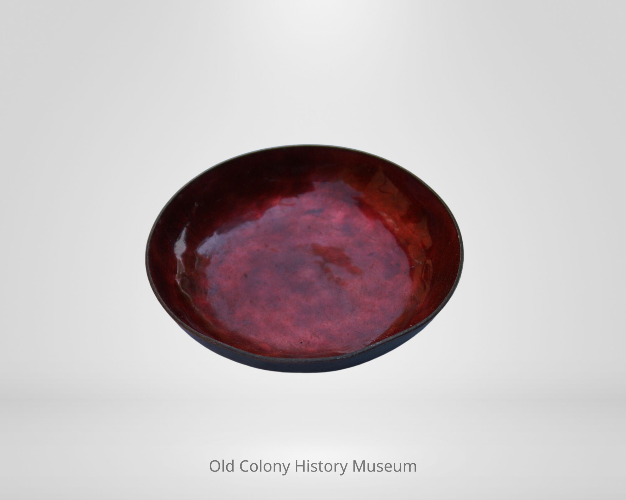 Small bowl with ruby red enameling along inner bowl. Outside of bowl is hand-hammered resulting in an Arts & Crafts finish effect.