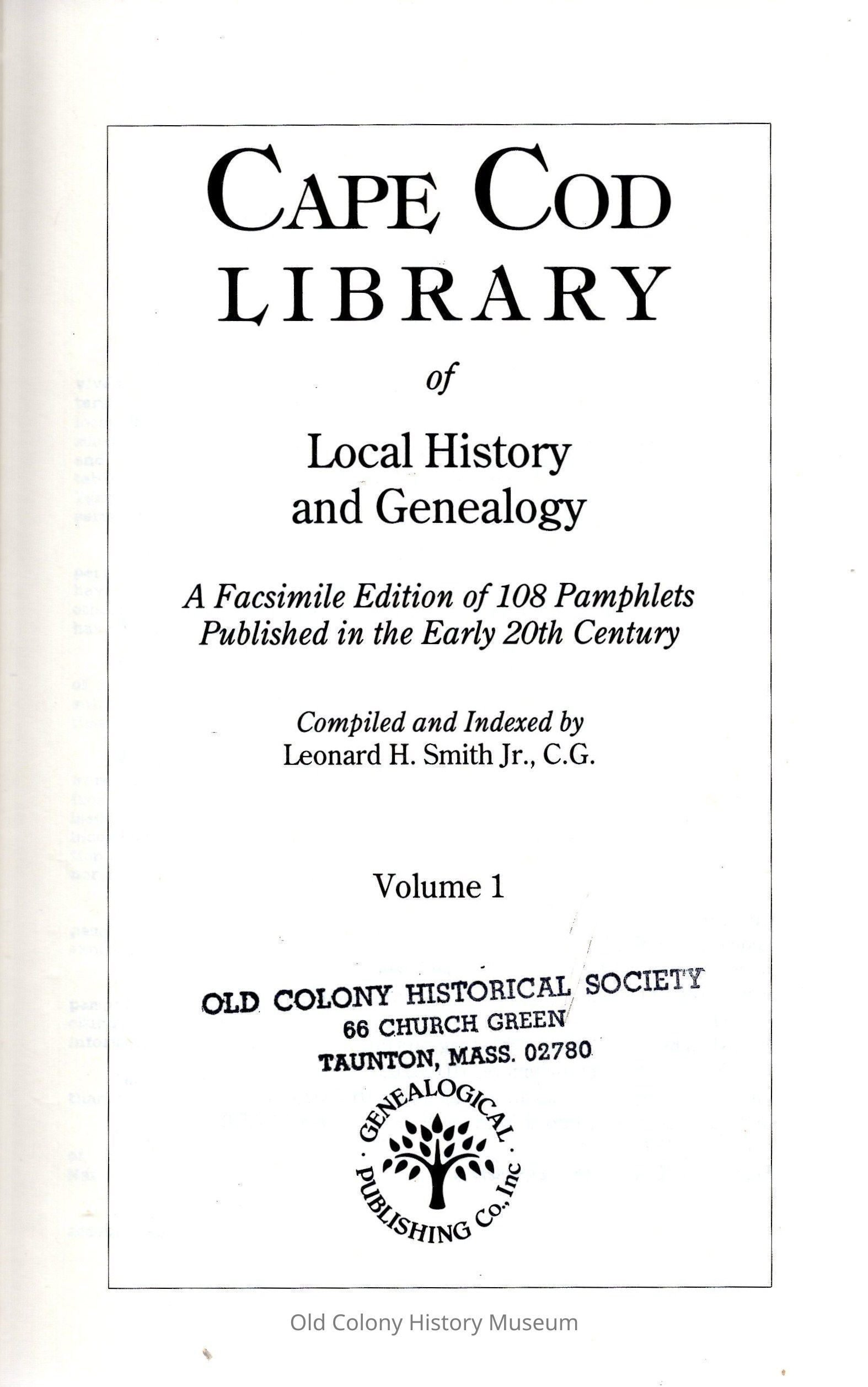 Cape Cod Library of Local History and Genealogy: a facsimile edition of 108 pamphlets published in the early 20th century compiled and indexed by Leonard H. Smith Jr.