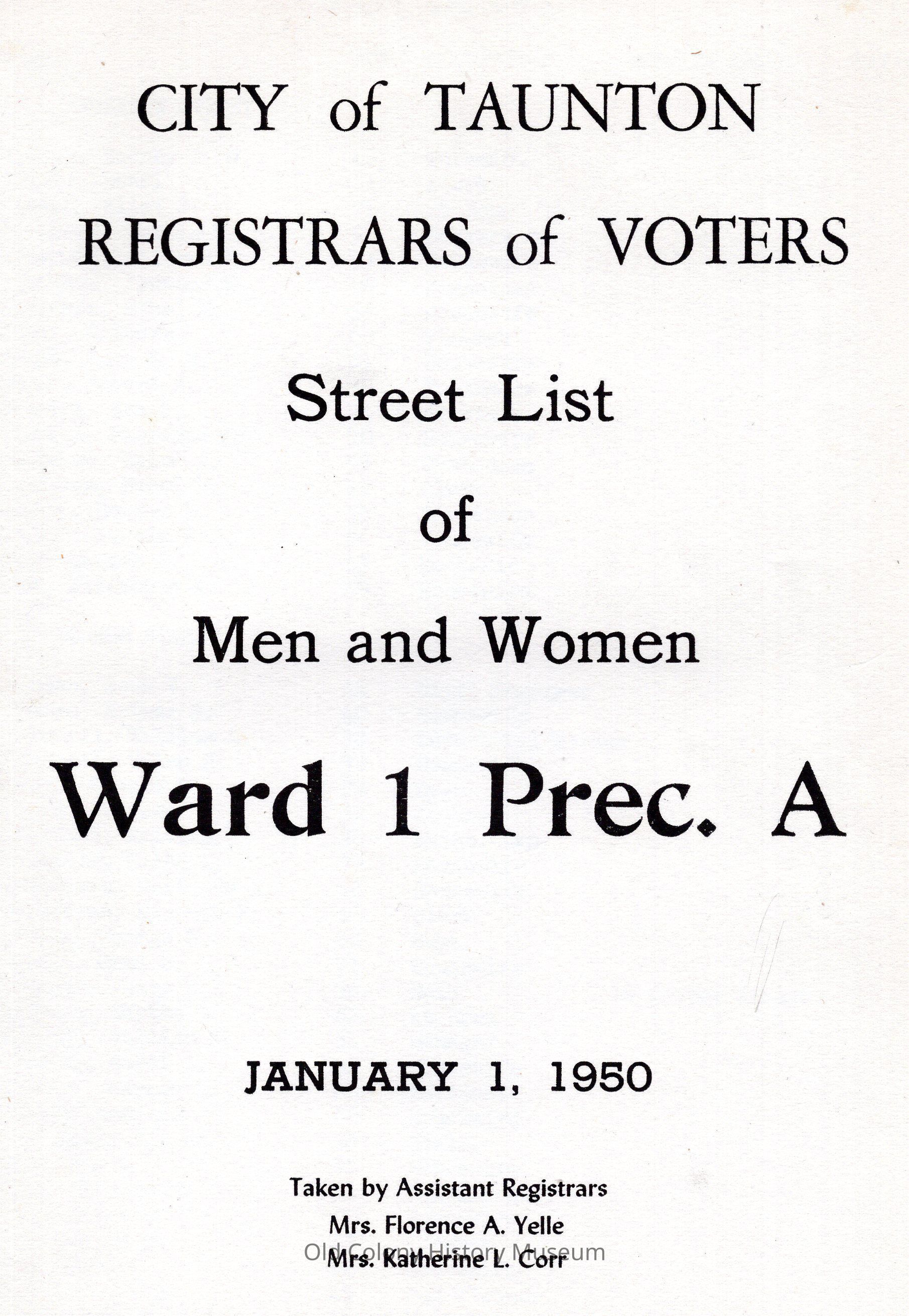 City of Taunton: Resgistrars of Voters Street List of Men and Women