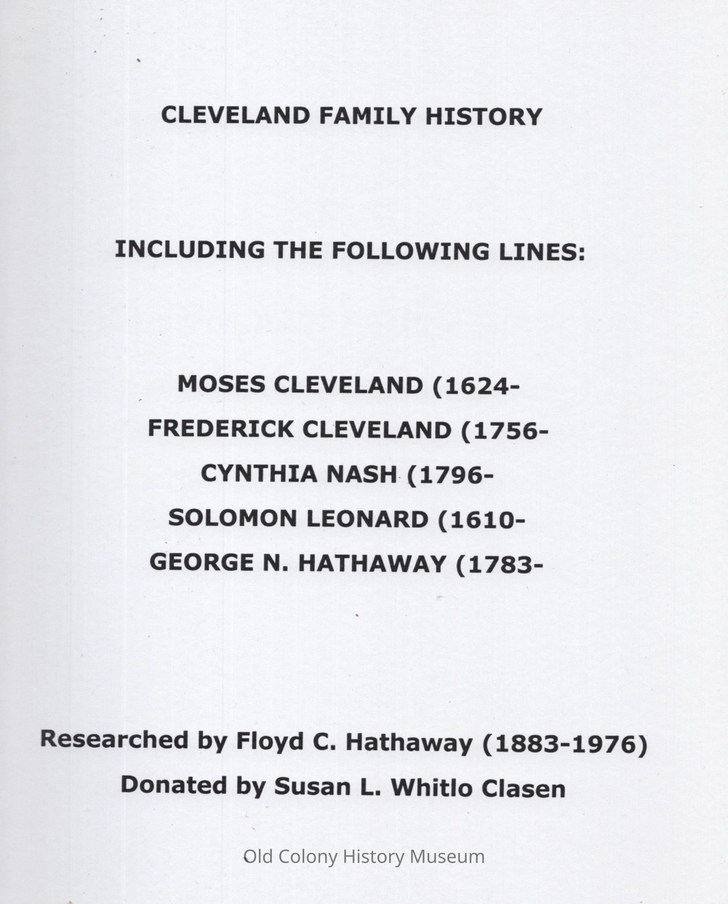 Cleveland Family HistoryEntry/Object ID