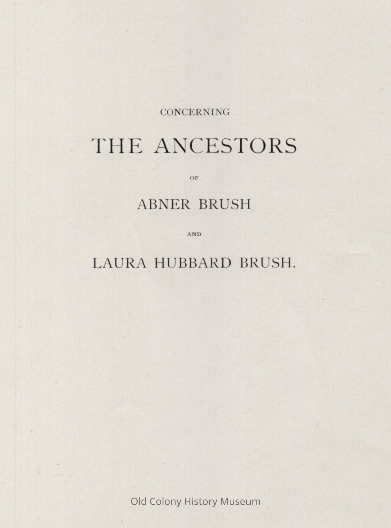 Concerning the Ancestors of Abner Brush and Laura Hubbard BrushEntry/Object ID
