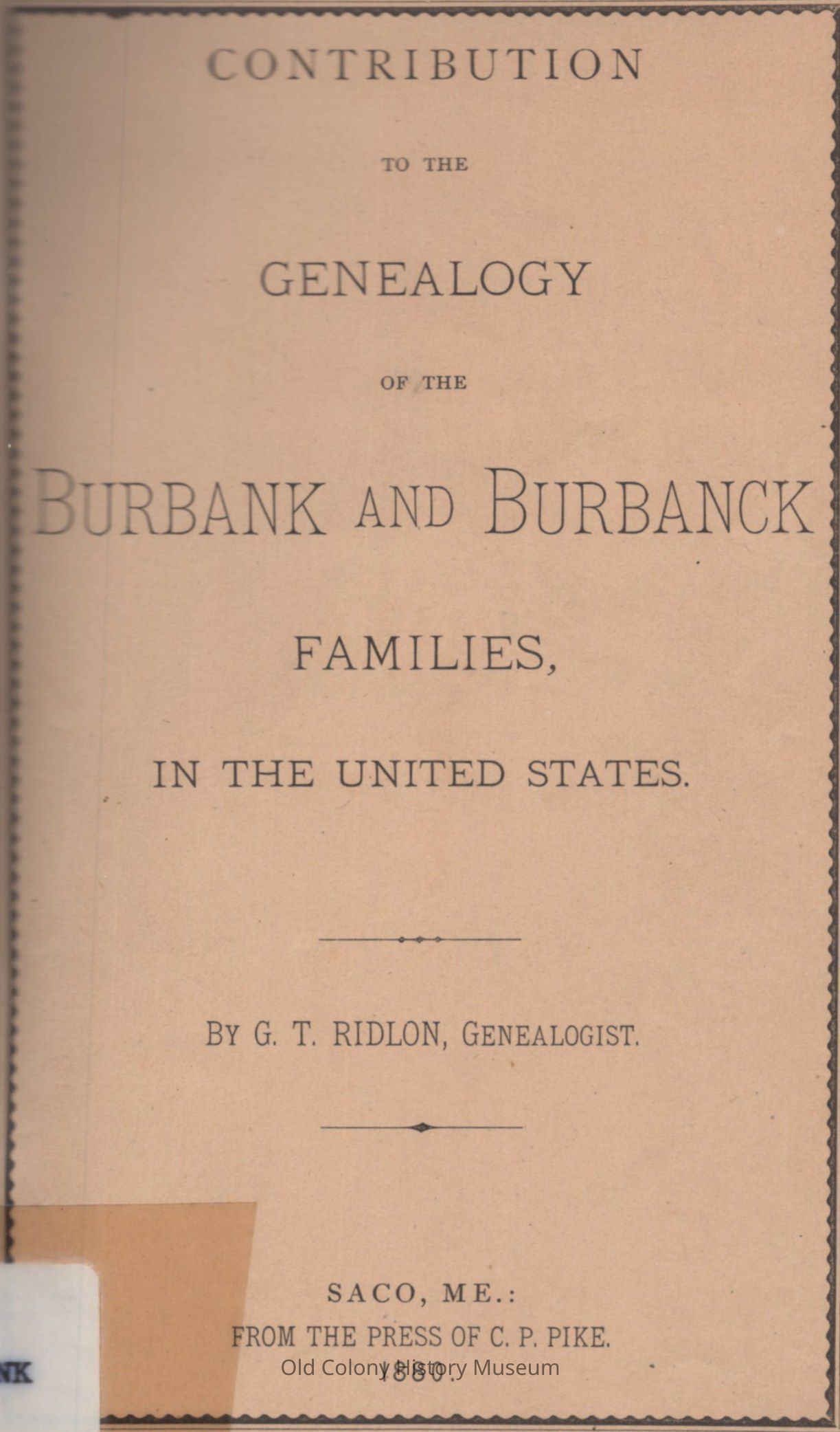 Contribution to the Genealogy of the Burbank and Burbanck Families in the United StatesEntry/Object ID