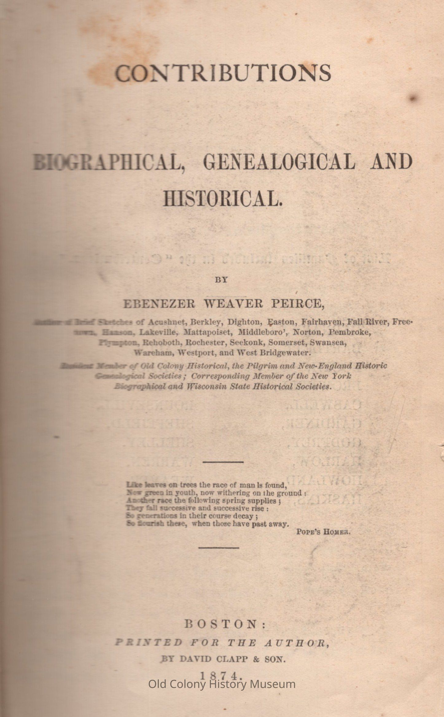 Contributions Biographical, Genealogical, and HistoricalEntry/Object ID