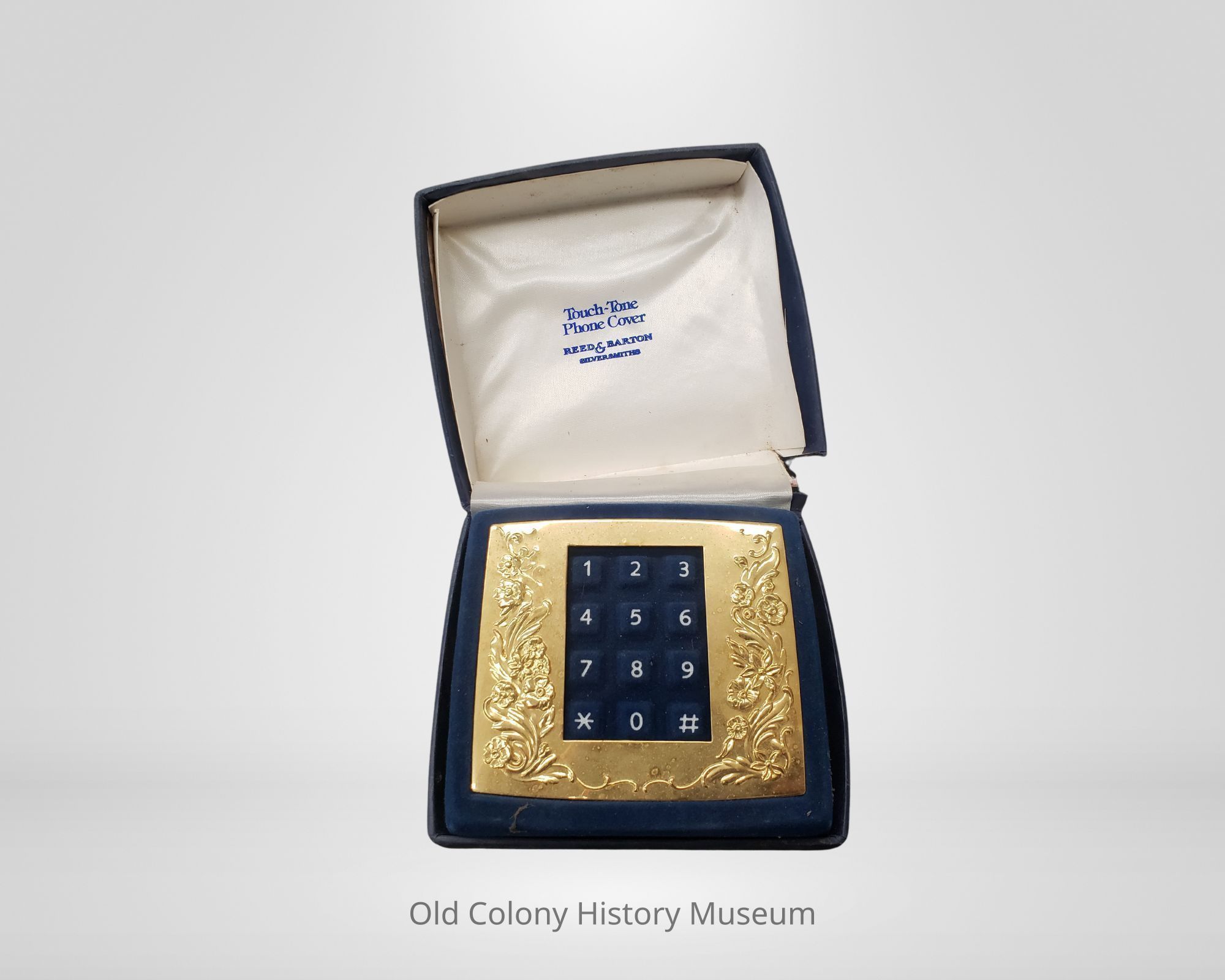 Gold plated touch tone phone cover and case made at Reed & Barton.