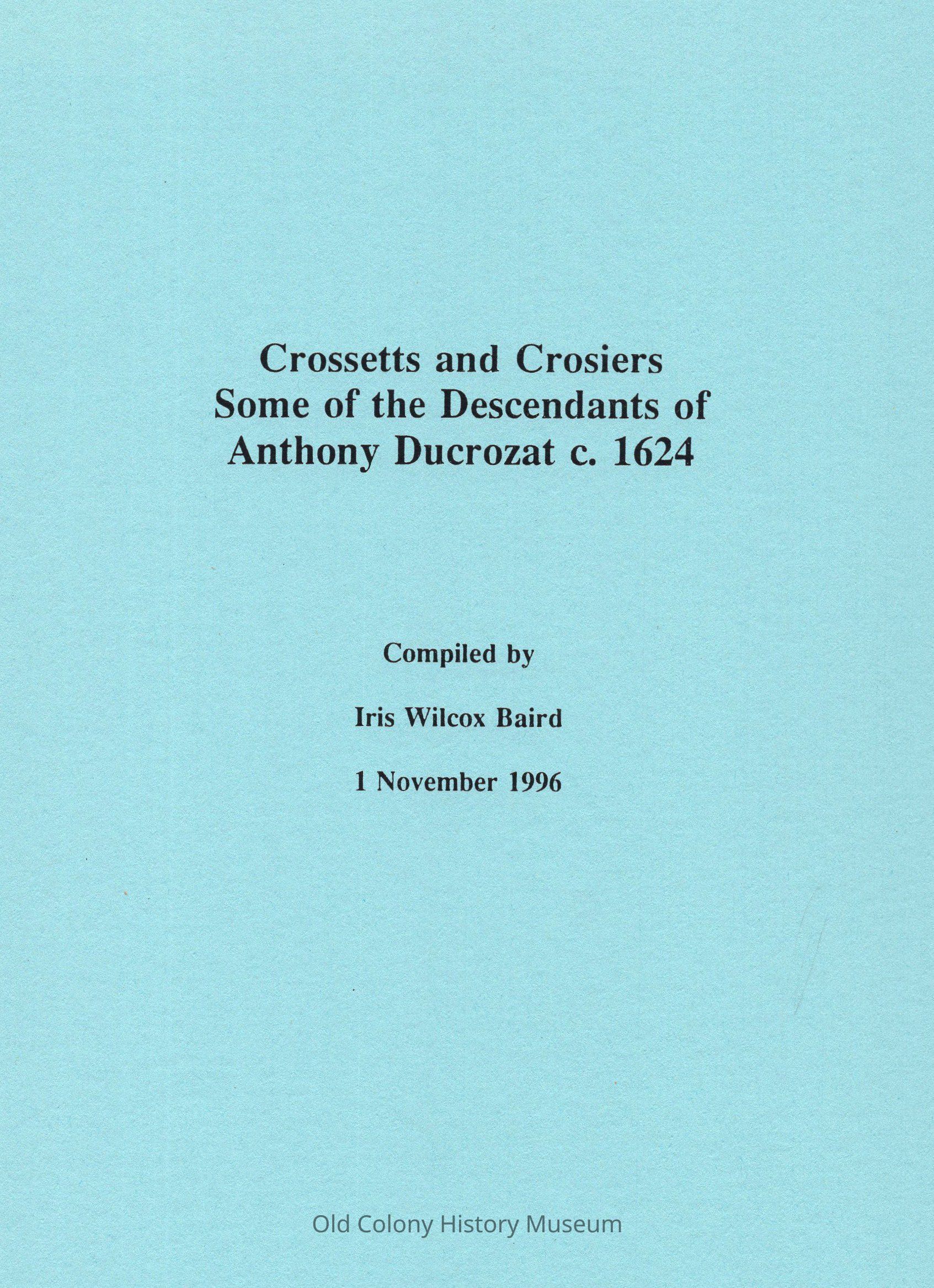 Crossetts and Crosiers: Some of the Descendants of Anthony Ducrozat c. 1624Entry/Object ID