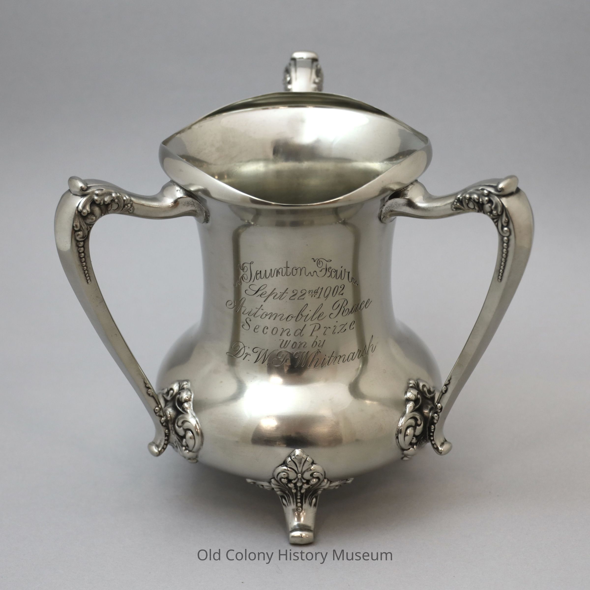 Silver cup, engraved "Taunton Fair, Sept. 22, 1902, Automobile Race- Second Prize"