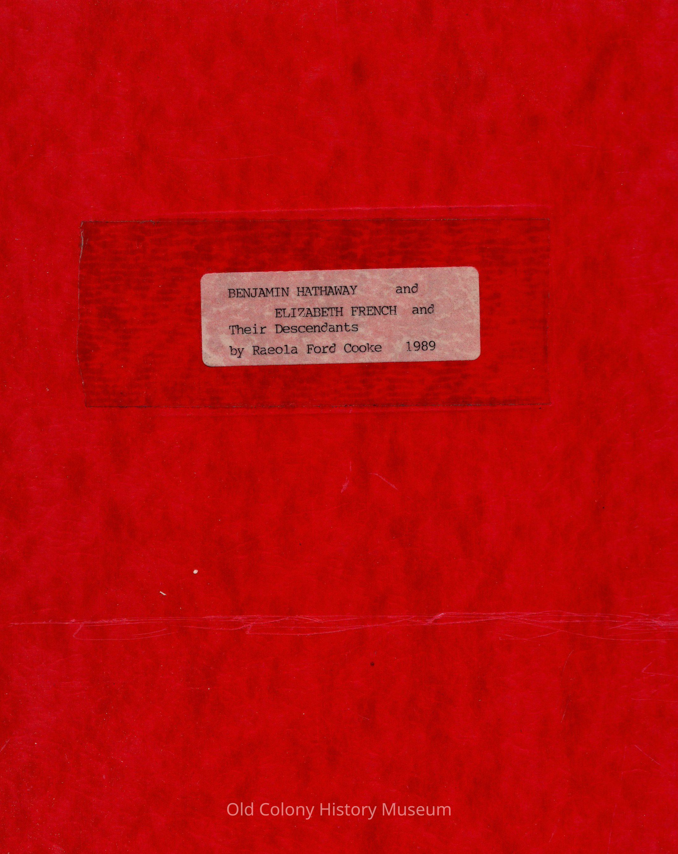 1. Hathaway Family. 2. Hathaway, Benjamin, 1747-1829 3. French, Elizabeth, 1768--?