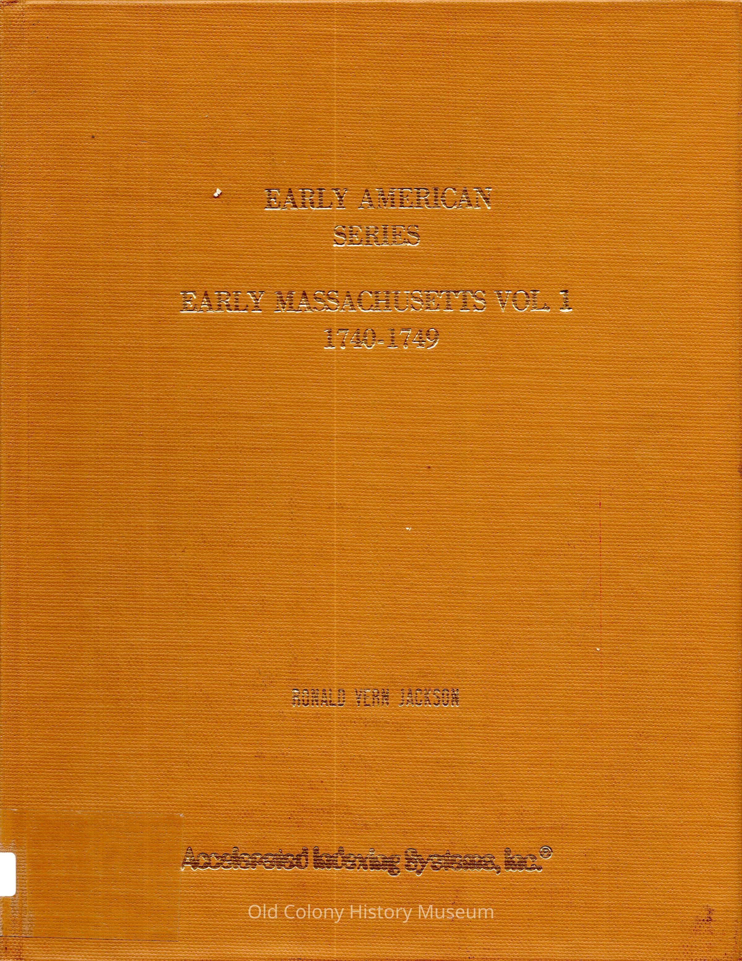 Early American series: early Massachusetts Volume I 1740-1749Entry/Object ID