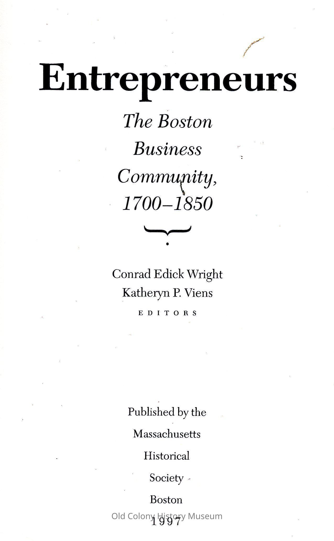 Entrepreneurs: the Boston Business Community, 1700-1850Entry/Object ID