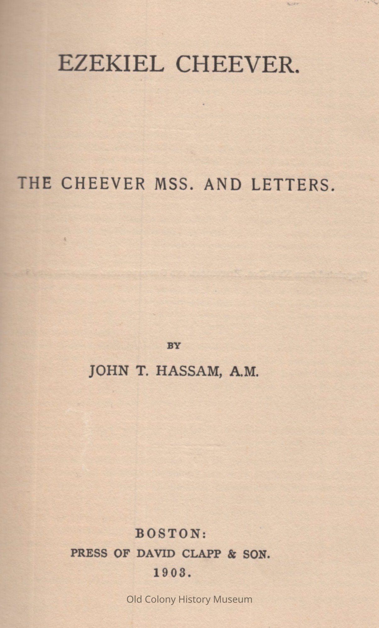1. Cheever, Ezekiel.Book Details