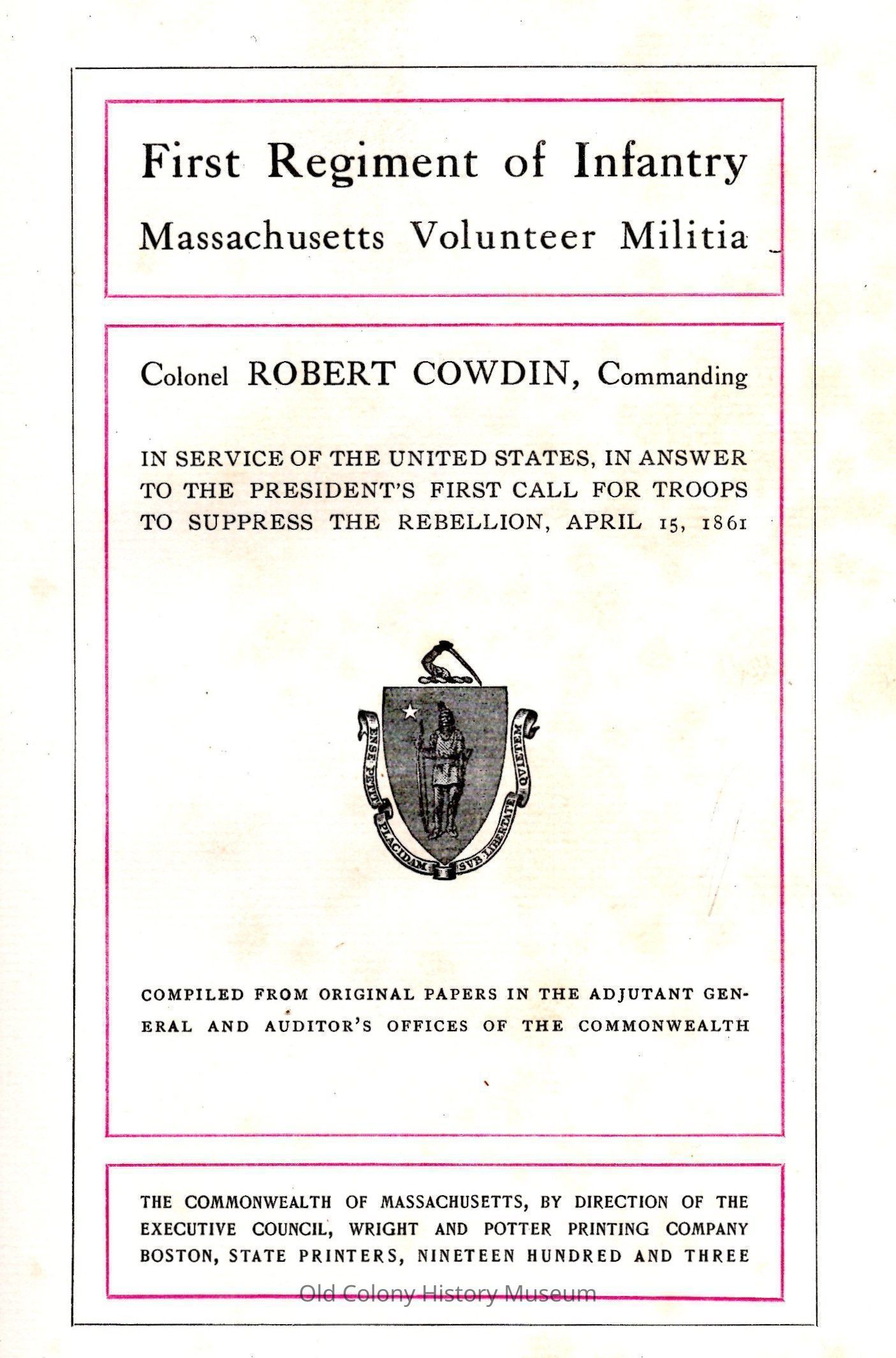 First Regiment of Infantry, Massachusetts volunteer militiaEntry/Object ID