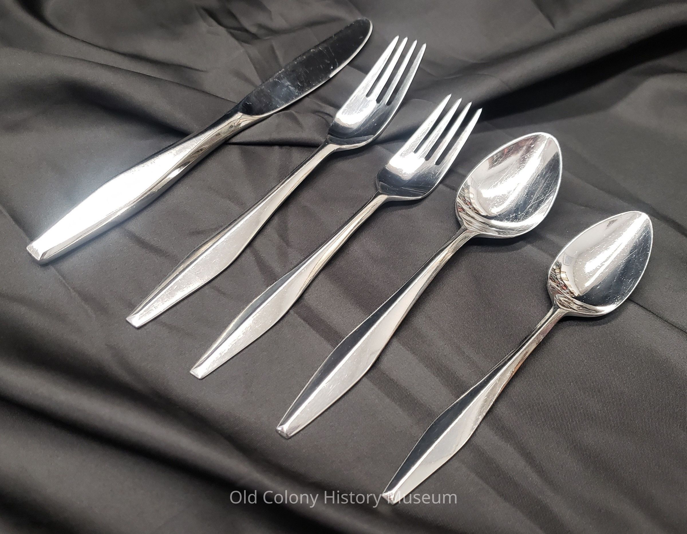 Five-piece selection of Reed & Barton flatware in their "Diamond" Pattern.