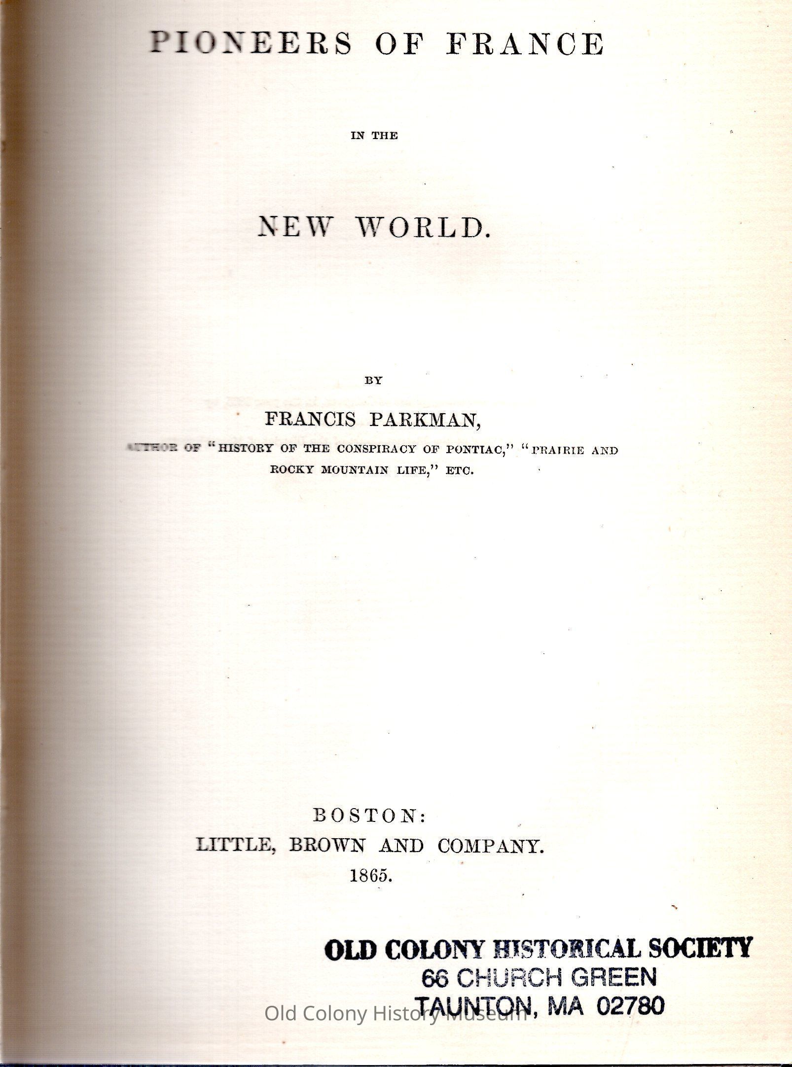 CONTENTS: pt. 1. Pioneers of France in the New World. Pt. 2. The Jesuits in North America. 1867. Pt. 3. The discovery of the Great West. 1869. Pt. 4. The old regime in Canada. 1874. Pt. 5. Count Frontenac and New France, under Louis XIV. 1877. Pt. 6. A half century of conflict. 1892. 2 v. Pt. 7. Montcalm and Wolfe. 1884. 2 v. ONLY HAVE PT. 1.