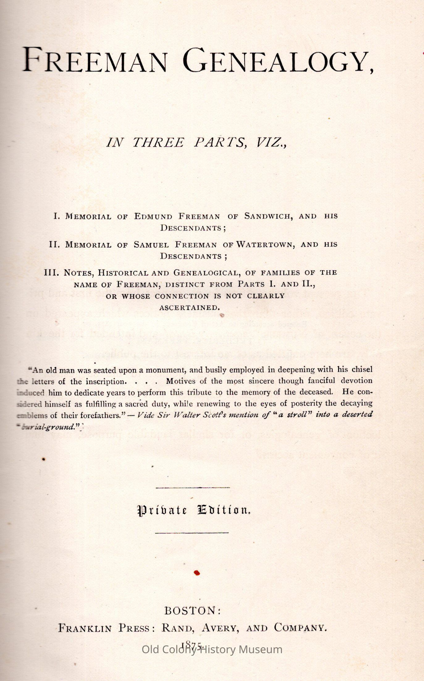 Note: I. Memorial of Edmund Freeman of Sandwich II. Memorial of Samuel Freeman of Watertown III. Notes, historical and genealogical