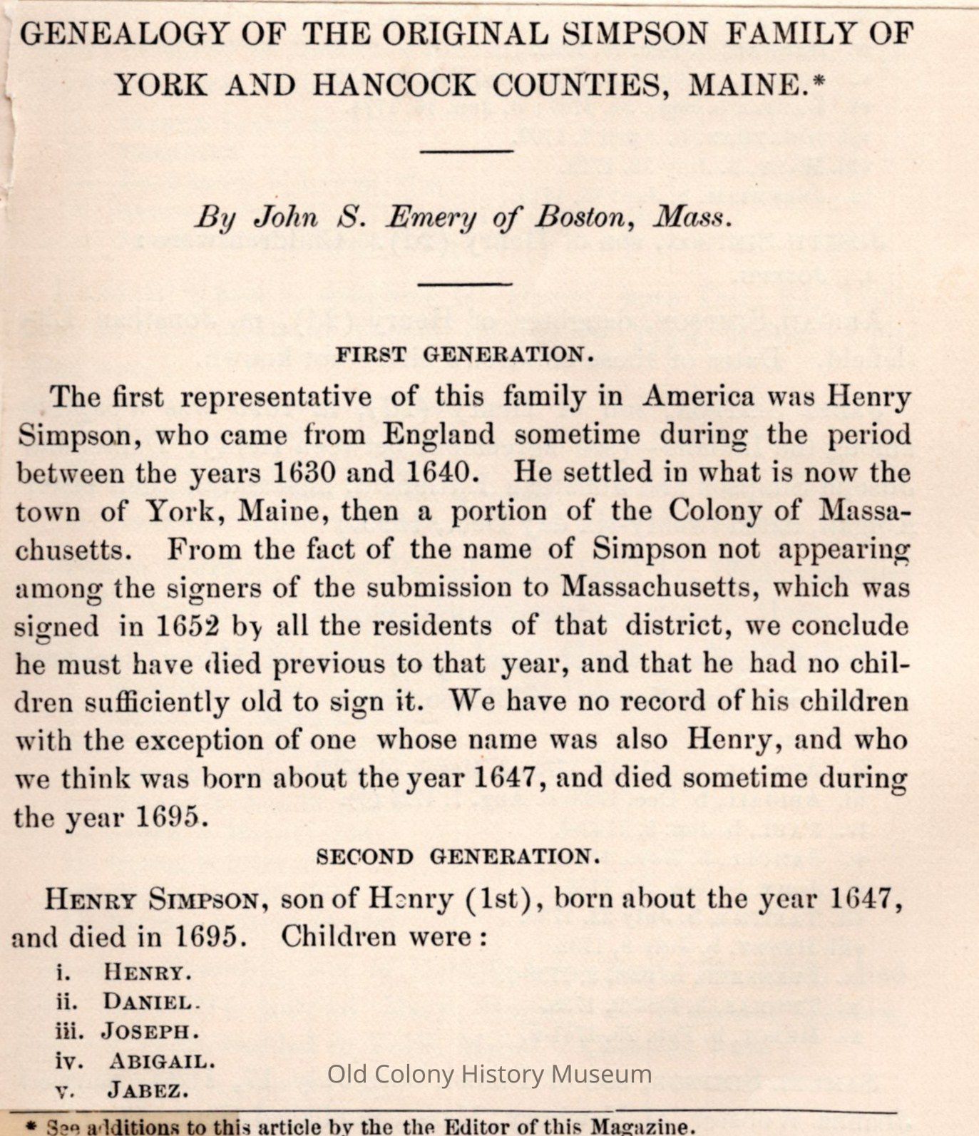 Genealogy of the Original Simpson Family of York and Hancock Counties, MaineEntry/Object ID