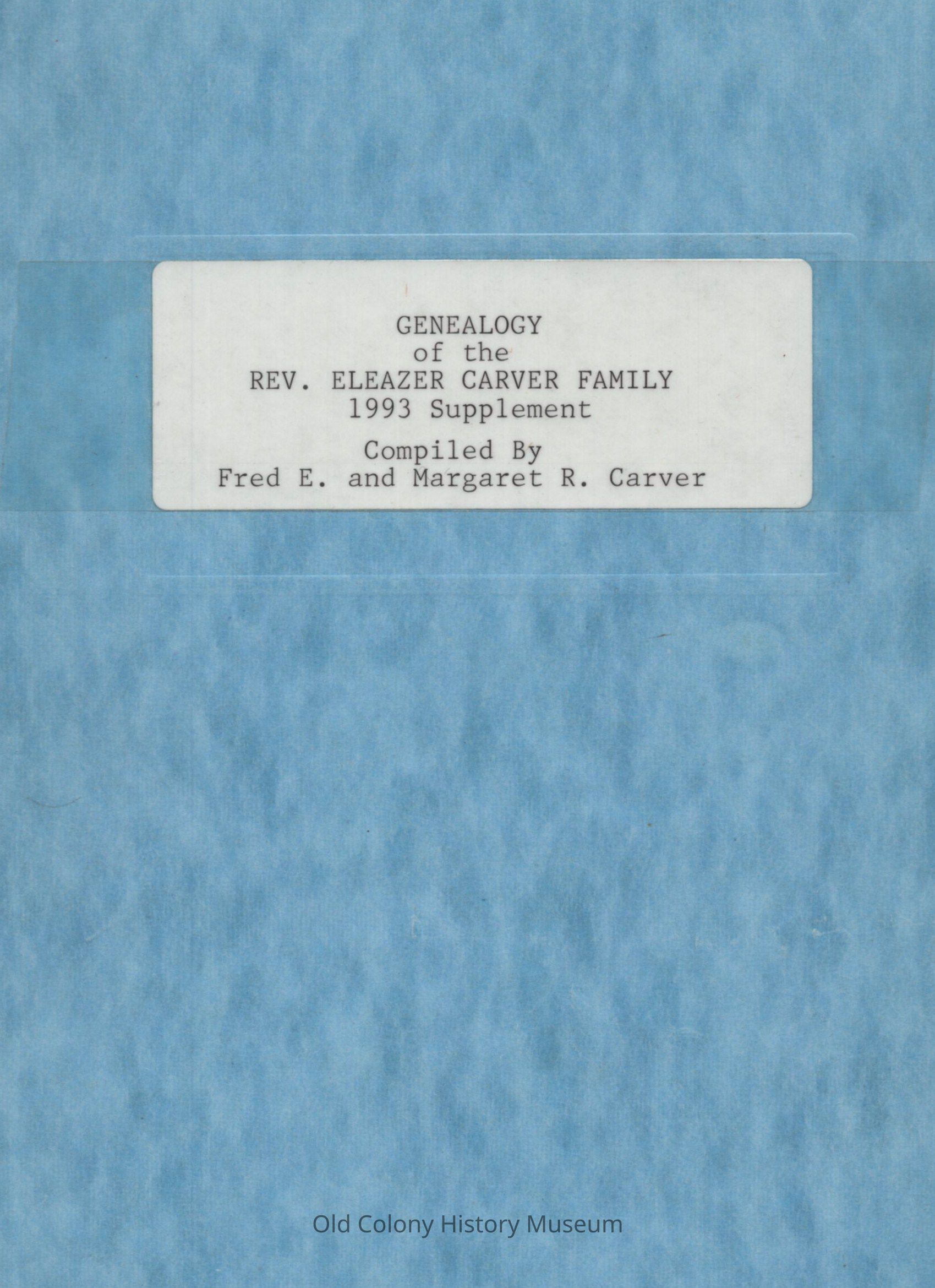 Genealogy of the Reverend Eleazer Carver Family; Compiled by Frederick E. Carver and Margaret R. CarverEntry/Object ID