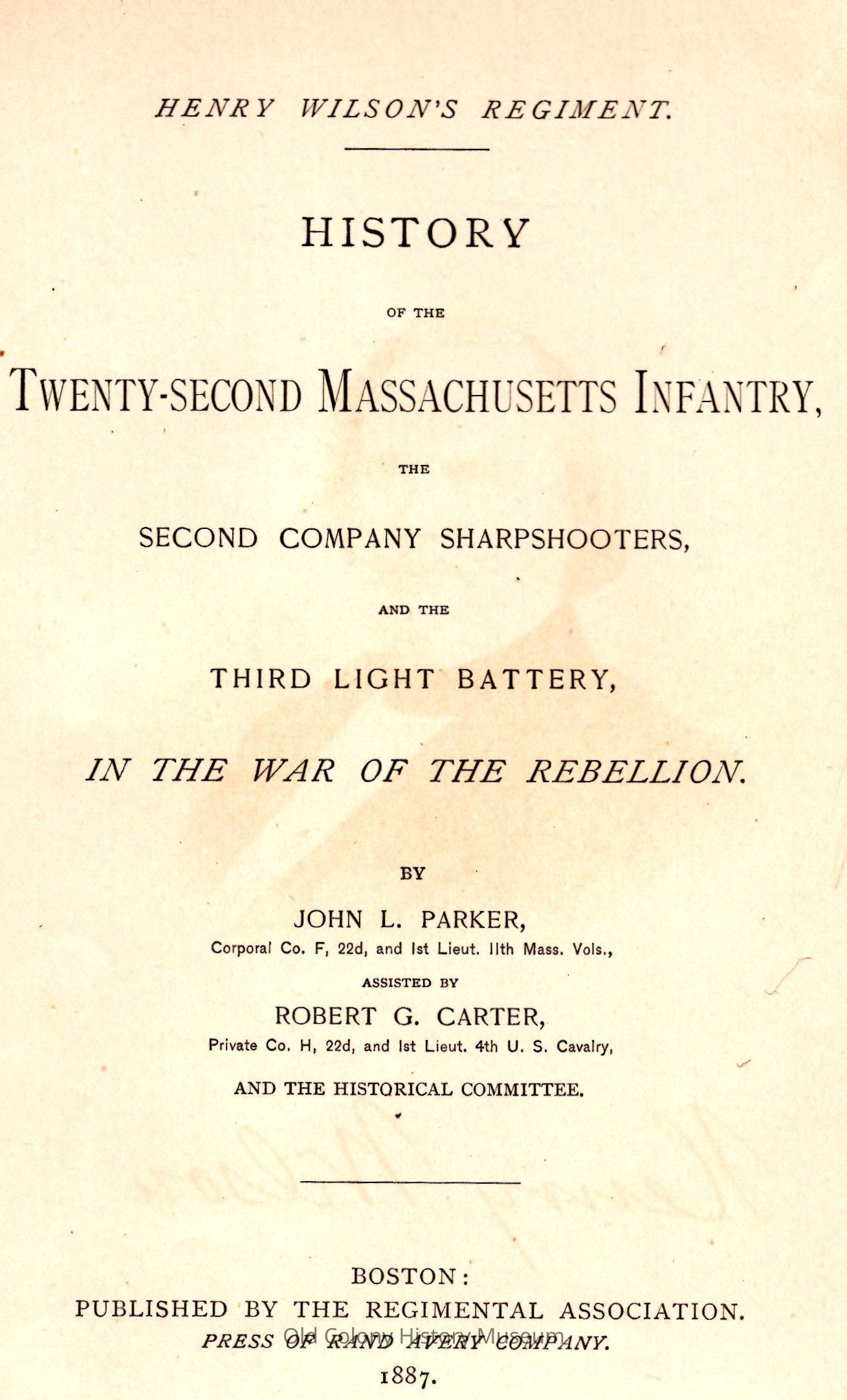 Henry Wilson's Regiment: History of the Twenty-second Massachusetts infantry, the Second company sharpshooters, and the Third light battery, in the war of the rebellion.Entry/Object ID