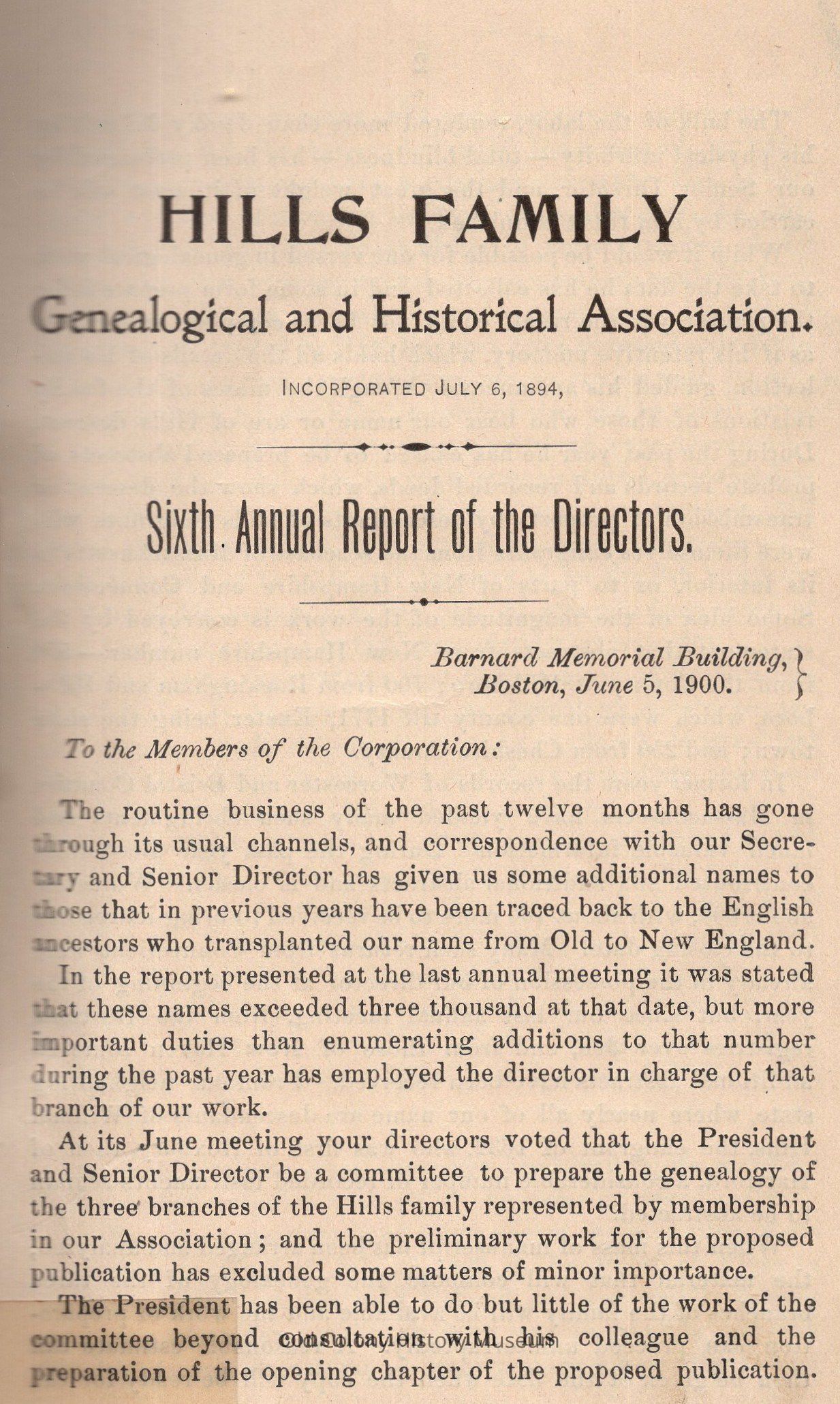 Hills Family: Genealogical and Historical AssociationEntry/Object ID