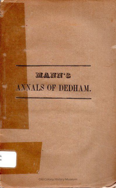 Historical Annals of Dedham, from its Settlement in 1635, to 1847Entry/Object ID