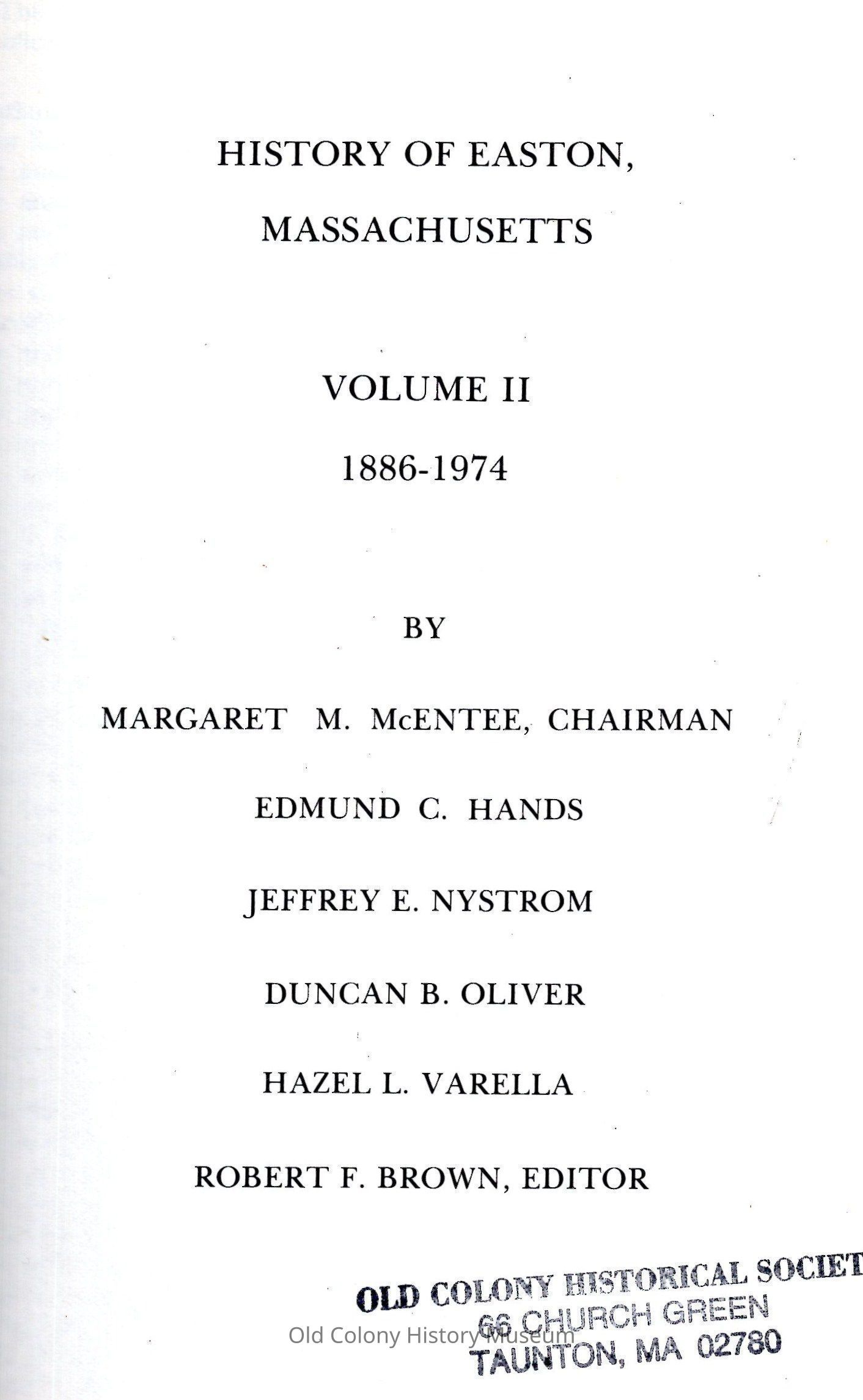 History of Easton, Massachusetts Vol. II, 1886-1974Entry/Object ID