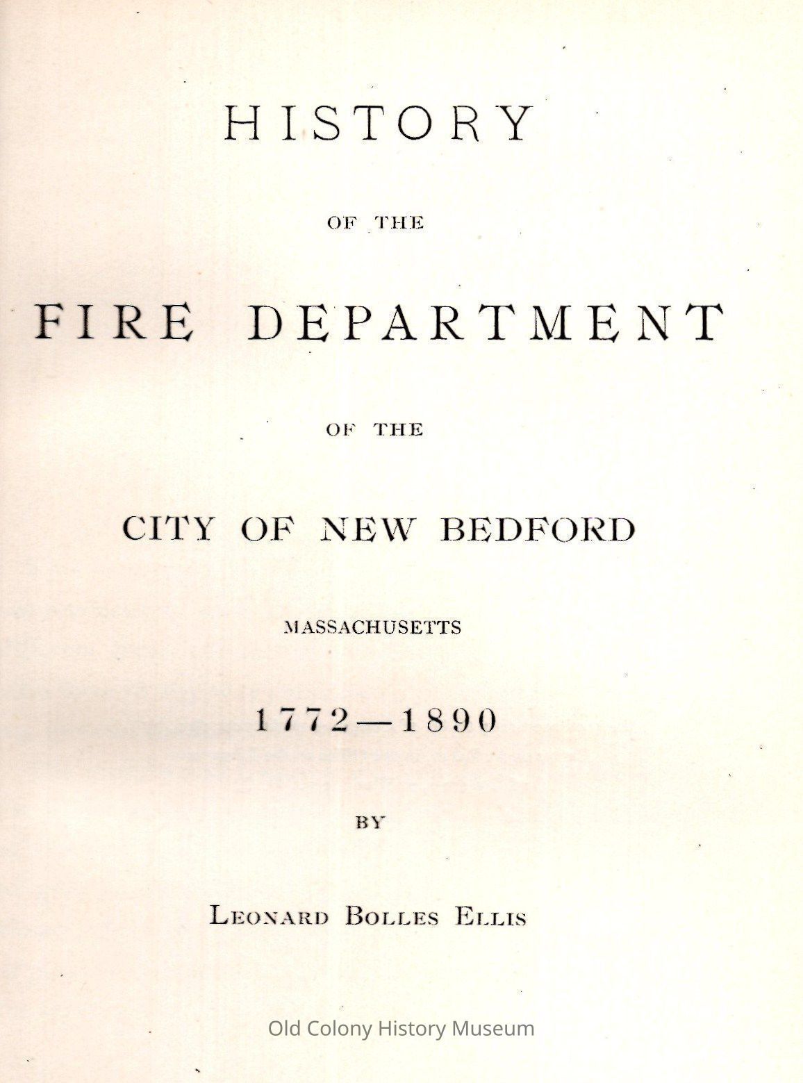 History of the Fire Department of the City of New Bedford, Massachusetts, 1772-1890Entry/Object ID