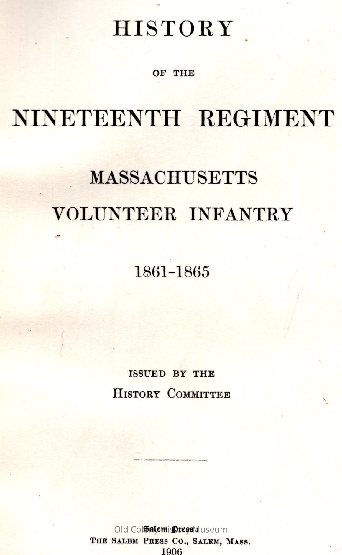 History of the Nineteenth regiment, Massachusetts volunteer infantry, 1861-1865; Issued by the History CommitteeEntry/Object ID