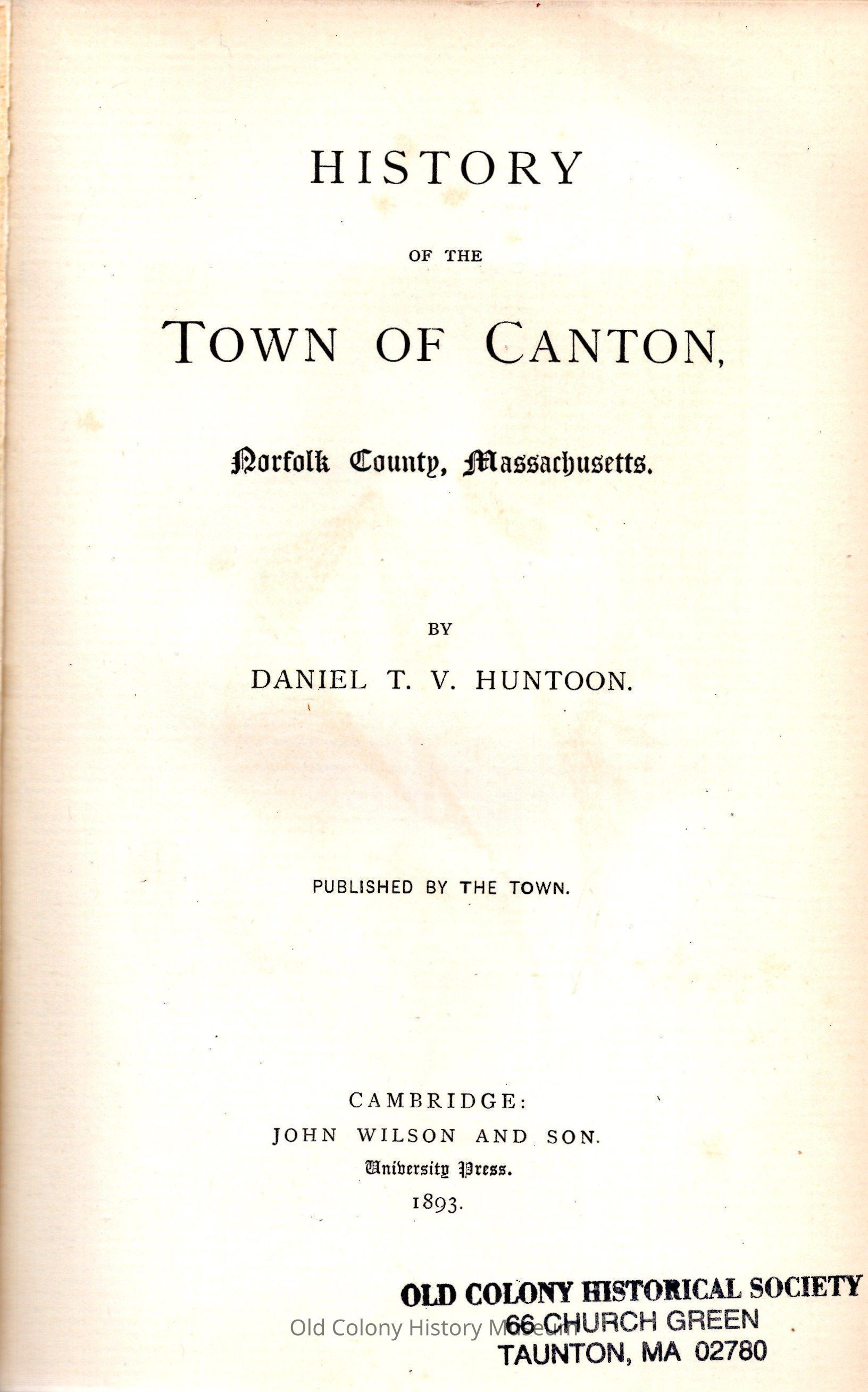 1. Canton, Mass. -- Hist.Book Details