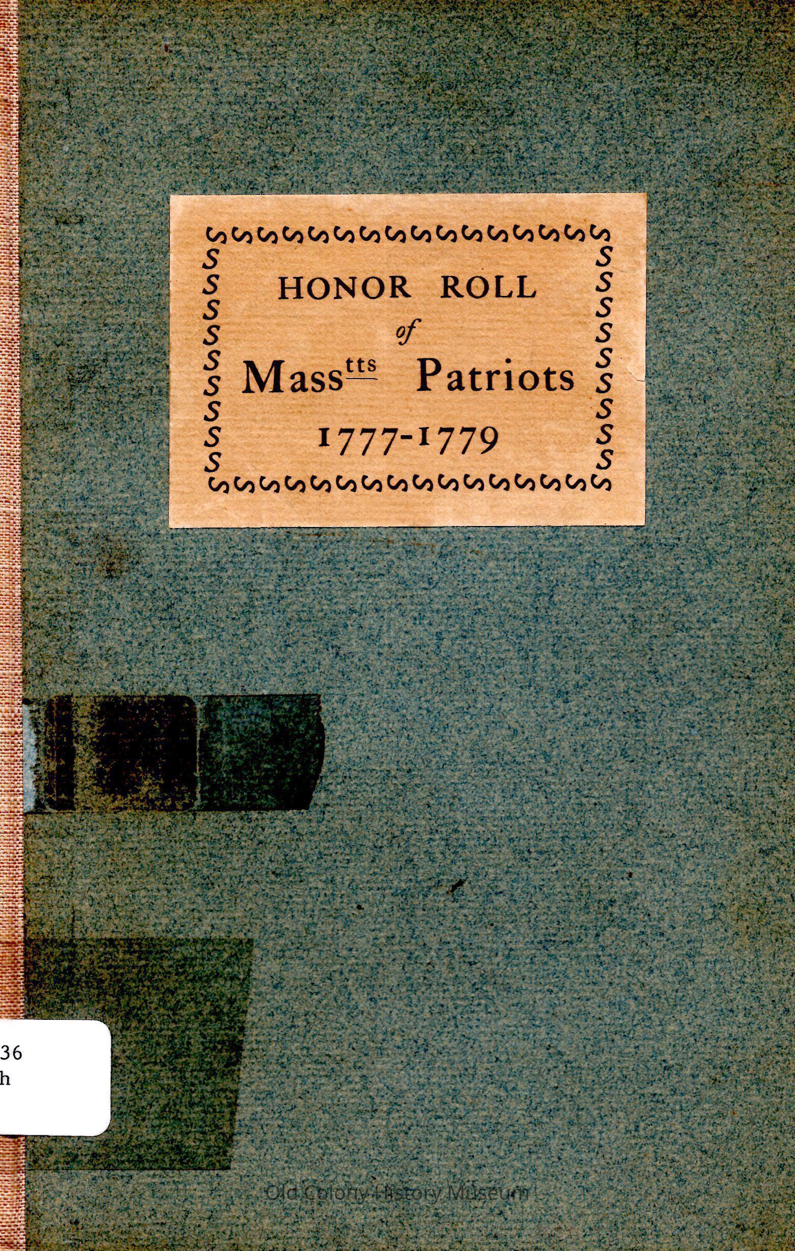 Honor Roll of Massachusetts Patriots Heretofore Unknown; Being a list of men and women who loaned money to the federal government during the years 1777-1779.