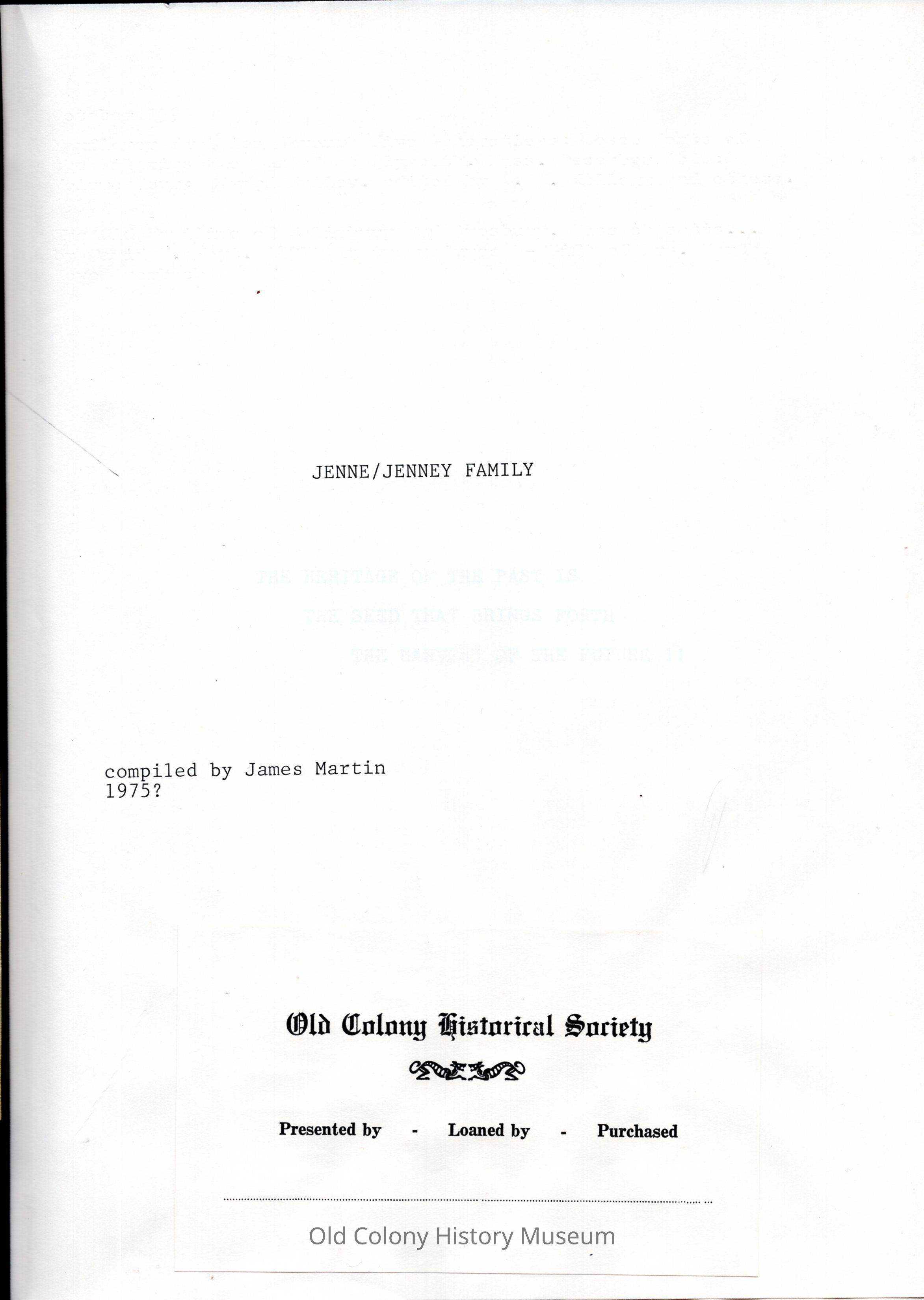 1. Jenne Family. 2. Jenney Family.