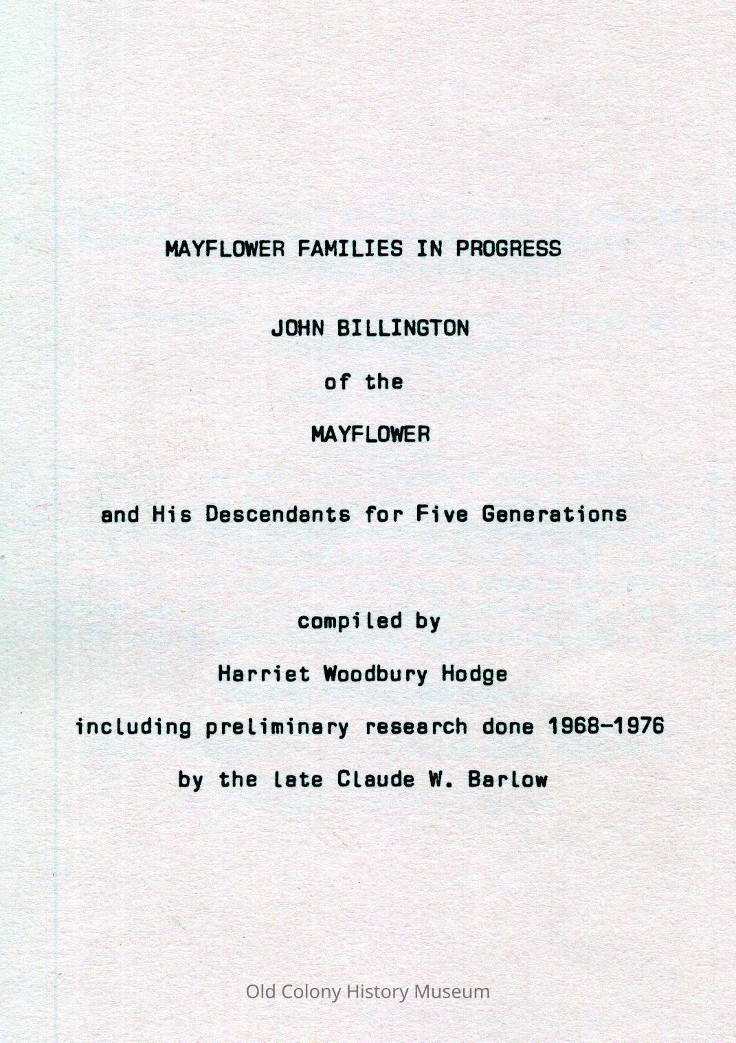 John Billington of the Mayflower and His Descendants for Five GenerationsEntry/Object ID