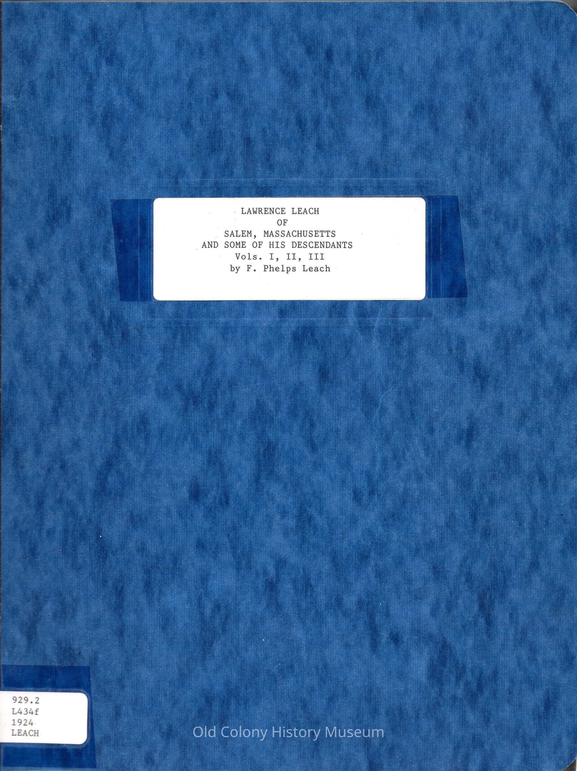 Lawrence Leach of Salem, Massachusetts, and Some of His DescendantsEntry/Object ID