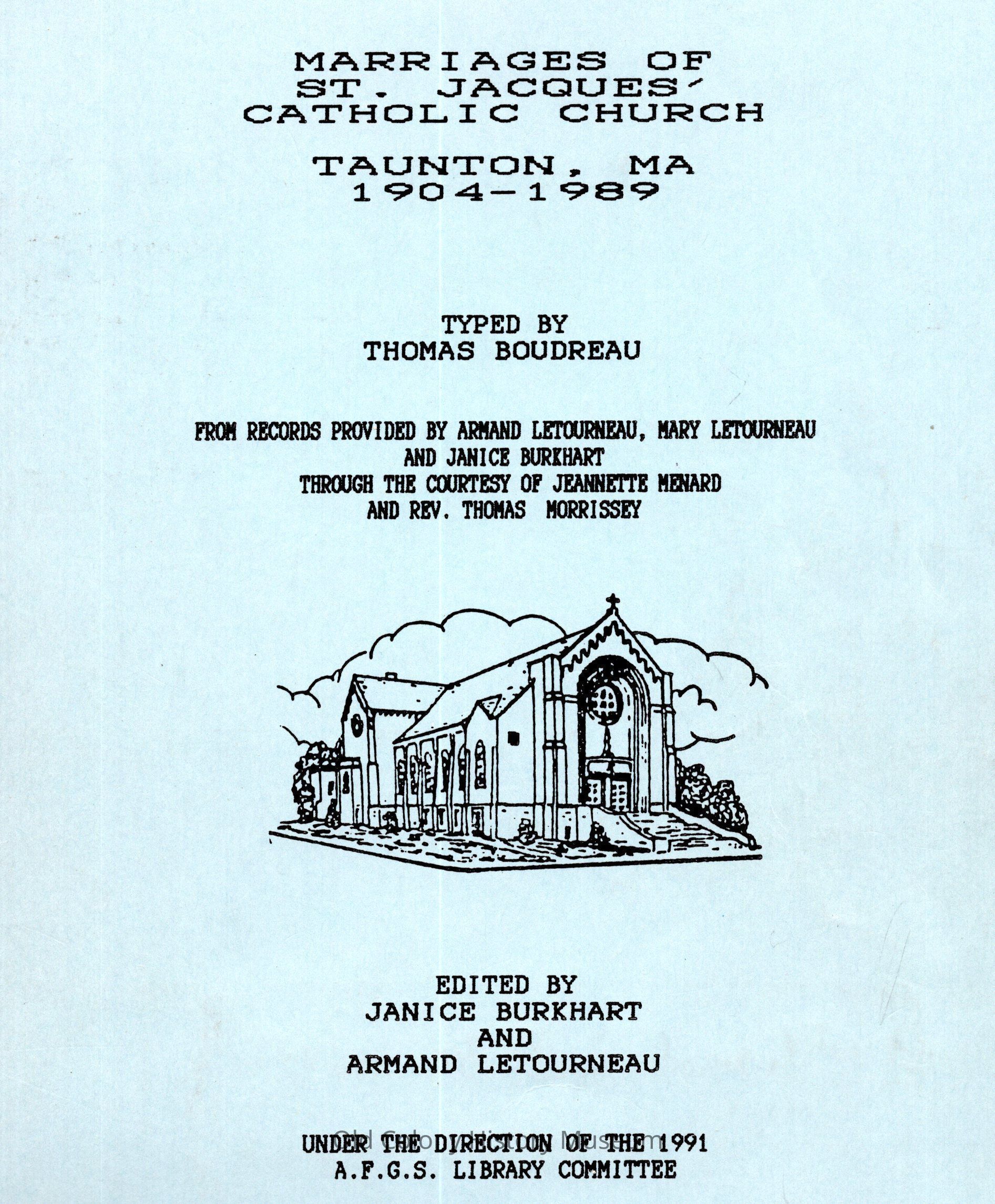 Marriages of St. Jacques Catholic Church, Taunton, MA 1904-1989Entry/Object ID
