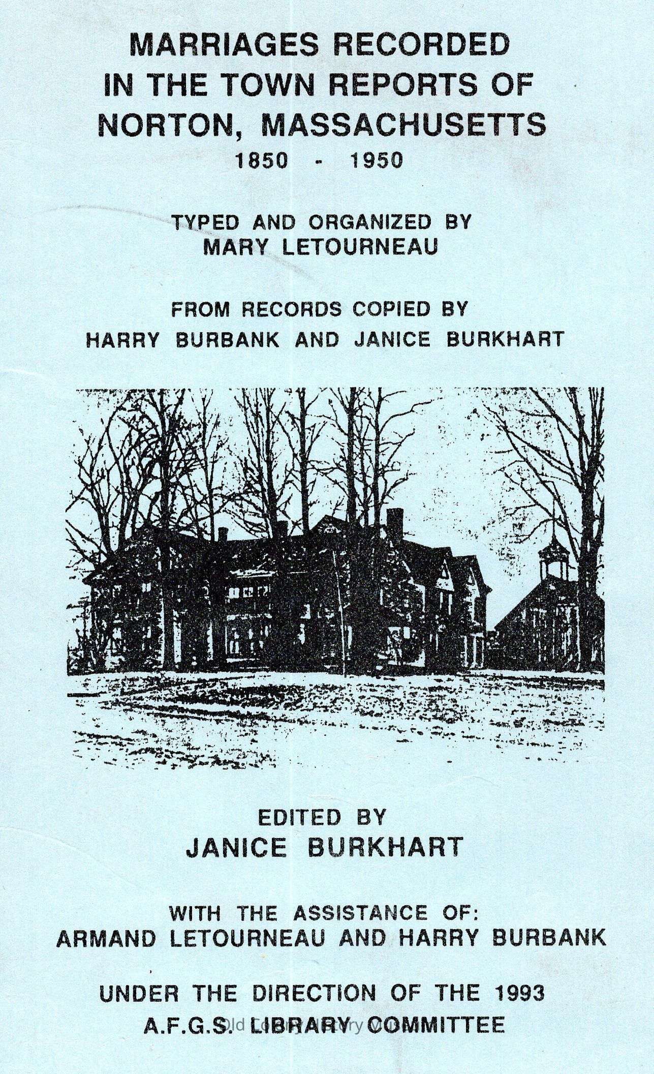 Marriages Recorded in the Town Reports of Norton, Massachusetts 1850-1950Entry/Object ID
