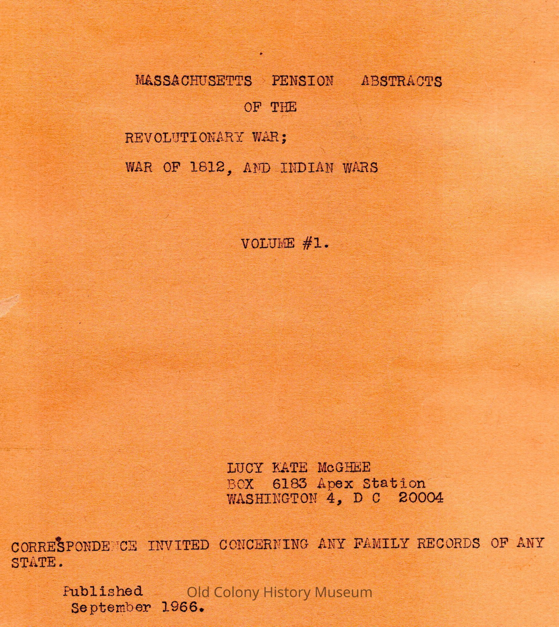 Massachusetts pension abstracts of the Revolutionary War, War of 1812 and Indian WarsEntry/Object ID